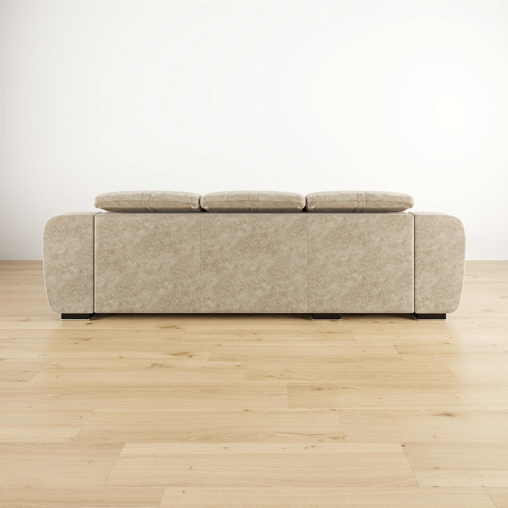 Подголовник с углублением в центре и фиксацией в 9 положениях. Для ещё большего комфорта в середине каждого из трёх подголовников дивана прострочен определённый узор, создающий углубление в центре.