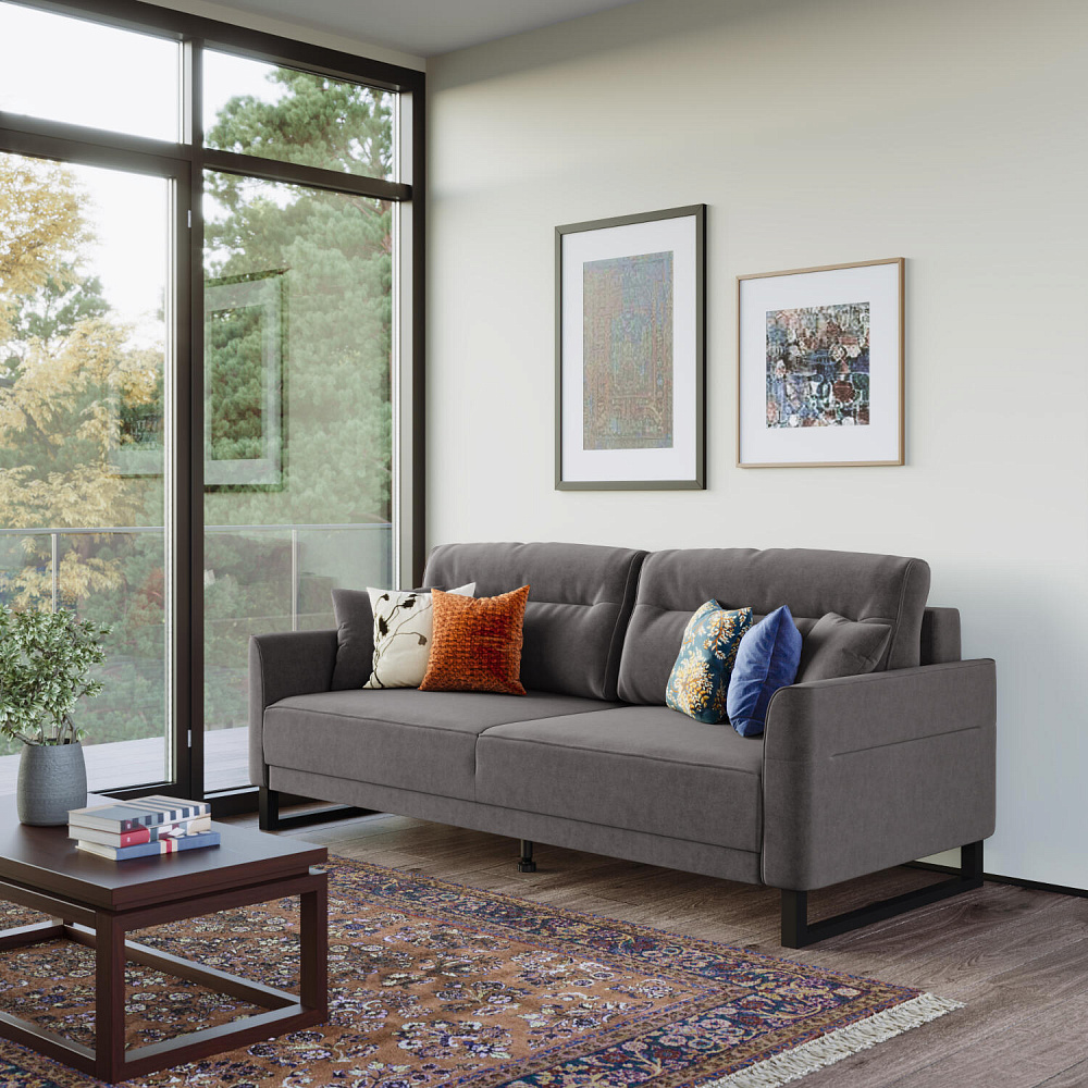 Глубокая посадка. На диване будет комфортно отдыхать обладателям высокого роста.