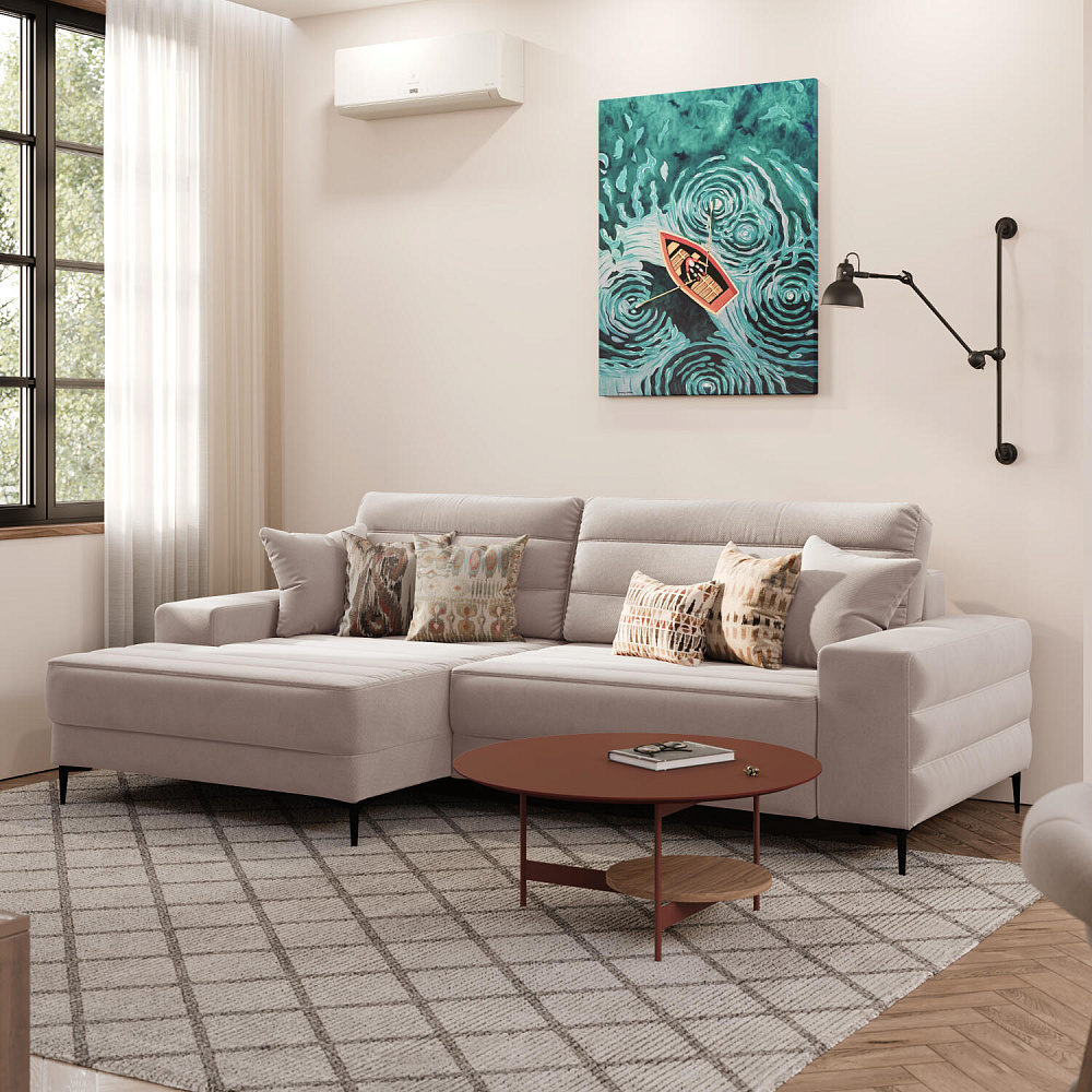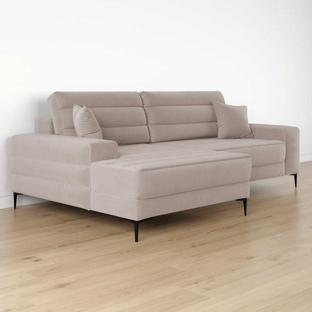Угловой диван «Лиам» — превосходное сочетание стиля, функциональности и эргономики. Прямоугольные формы, горизонтальная строчка на каждом элементе дивана и тонкие черные опоры подчеркивают элегантный дизайн модели. Простой в использовании механизм трансформации поможет быстро разложить диван и создать просторное спальное место. Также «Лиам» имеет вместительное место хранения под сиденьем для множества вещей.