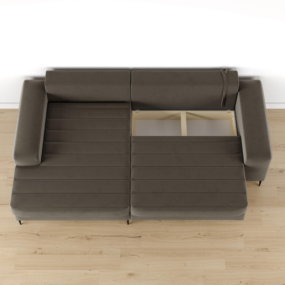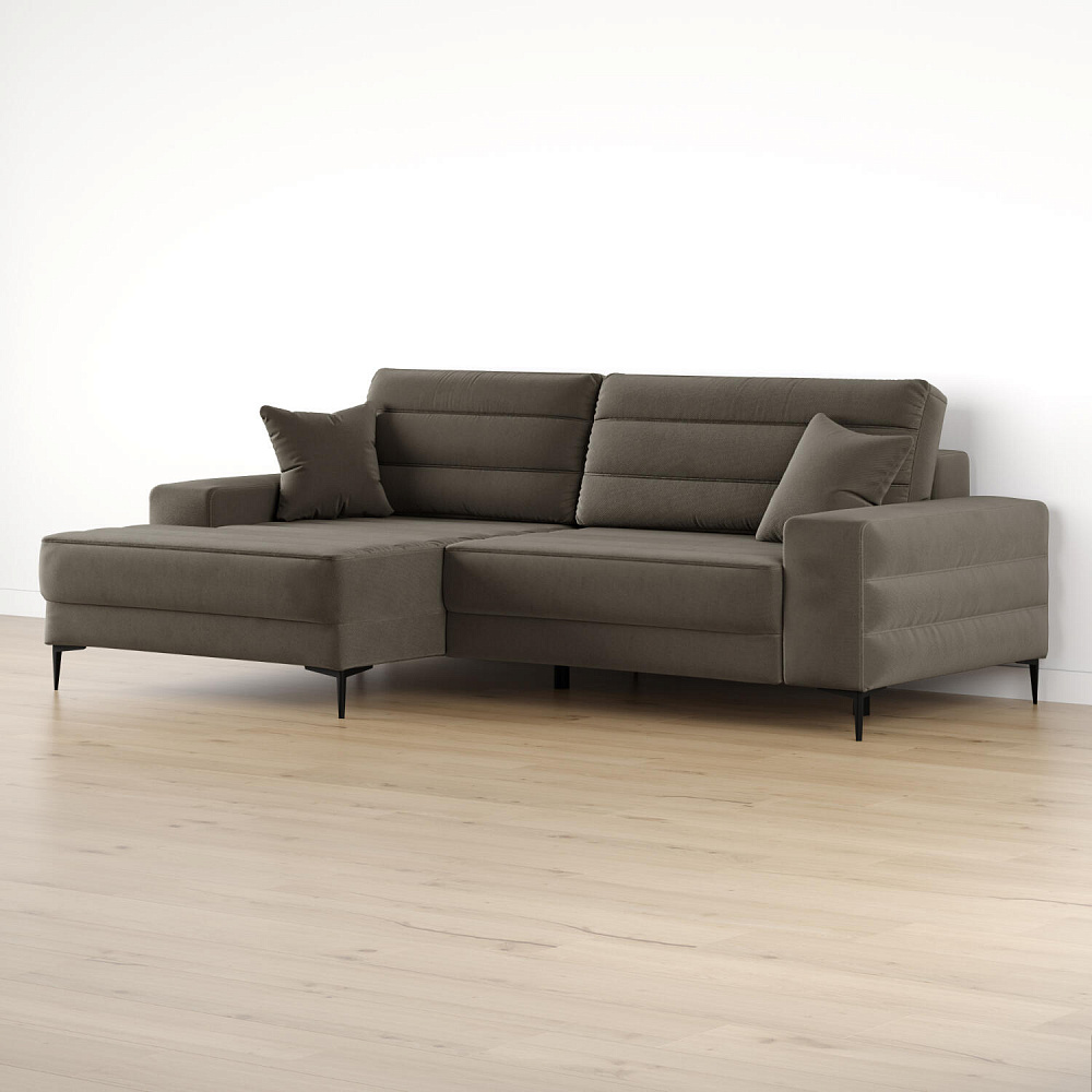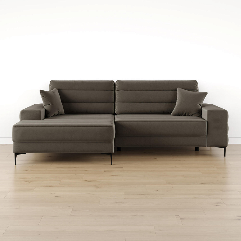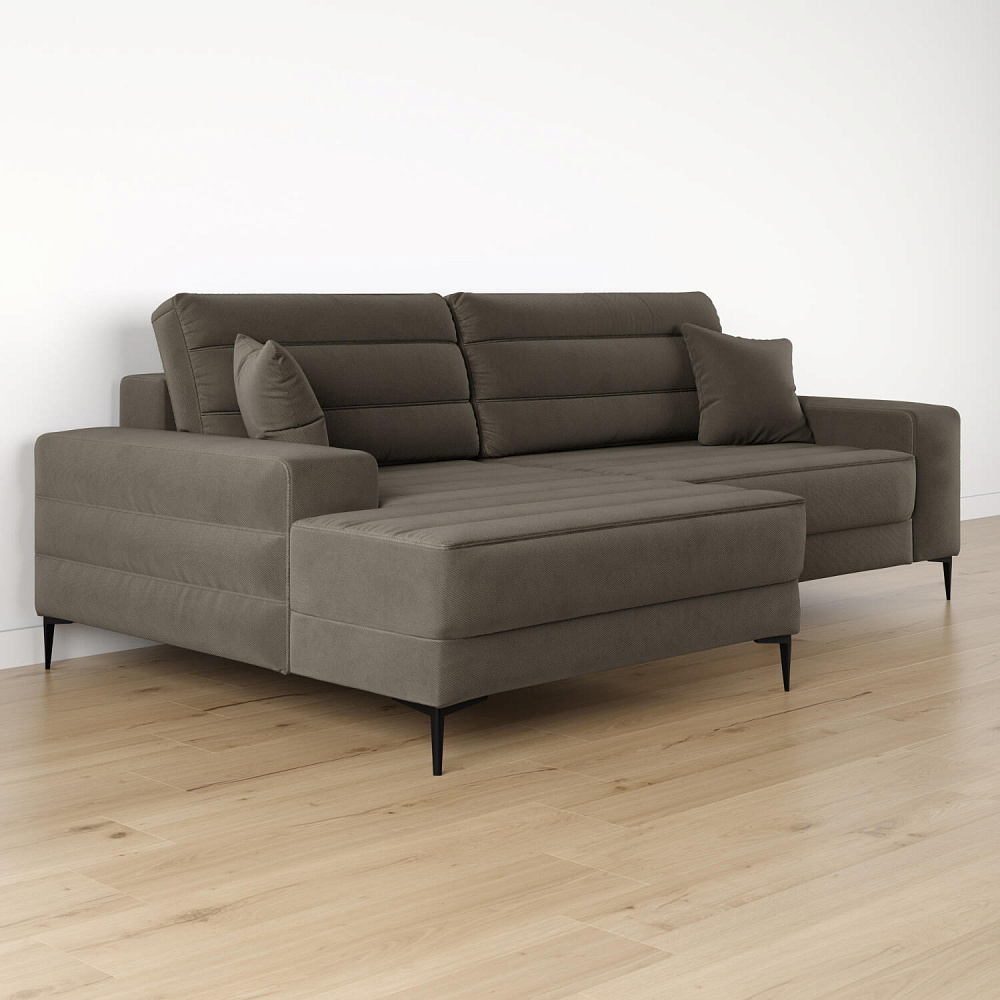 Угловой диван «Лиам» — превосходное сочетание стиля, функциональности и эргономики. Прямоугольные формы, горизонтальная строчка на каждом элементе дивана и тонкие черные опоры подчеркивают элегантный дизайн модели. Простой в использовании механизм трансформации поможет быстро разложить диван и создать просторное спальное место. Также «Лиам» имеет вместительное место хранения под сиденьем для множества вещей.