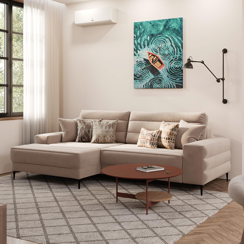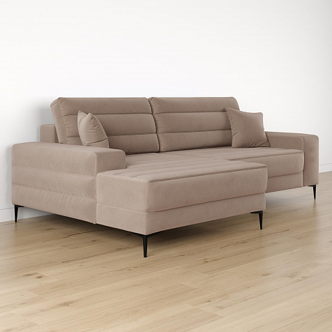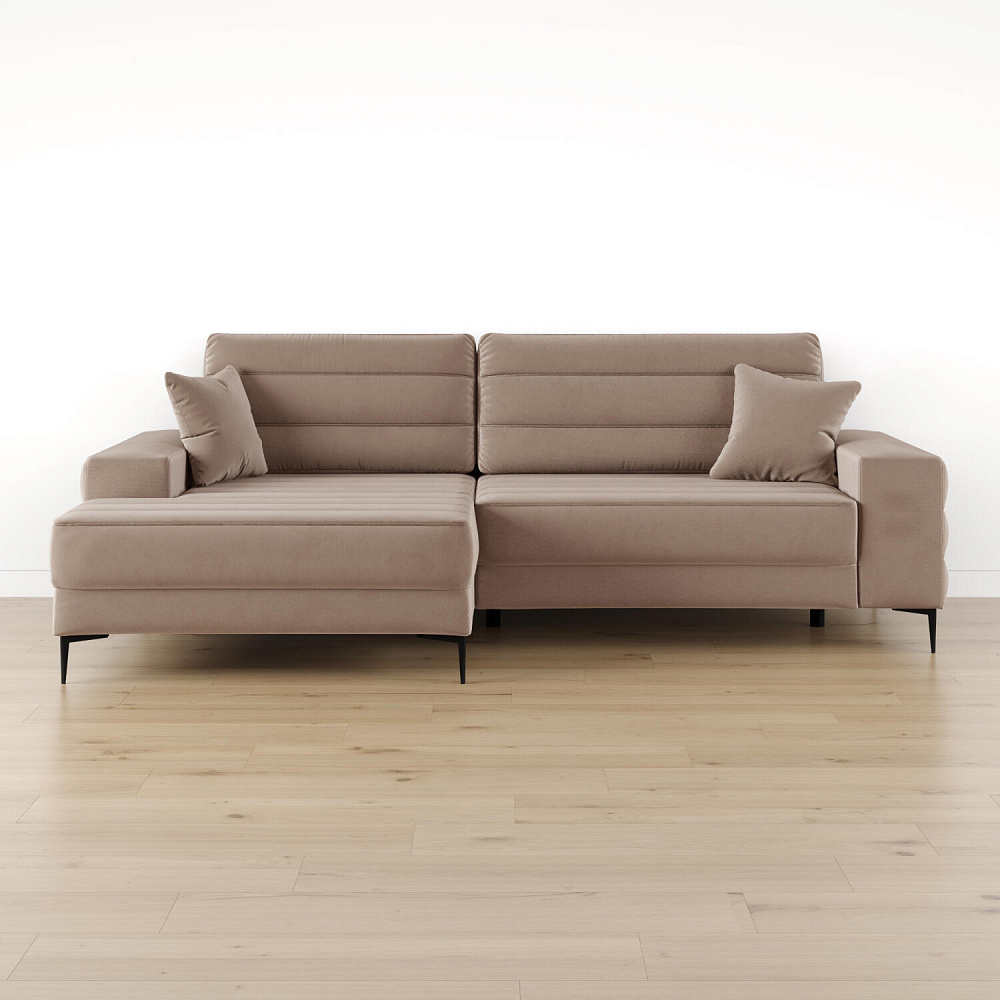 Угловой диван «Лиам» — превосходное сочетание стиля, функциональности и эргономики. Прямоугольные формы, горизонтальная строчка на каждом элементе дивана и тонкие черные опоры подчеркивают элегантный дизайн модели. Простой в использовании механизм трансформации поможет быстро разложить диван и создать просторное спальное место. Также «Лиам» имеет вместительное место хранения под сиденьем для множества вещей.