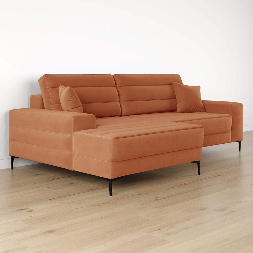 Угловой диван «Лиам» — превосходное сочетание стиля, функциональности и эргономики. Прямоугольные формы, горизонтальная строчка на каждом элементе дивана и тонкие черные опоры подчеркивают элегантный дизайн модели. Простой в использовании механизм трансформации поможет быстро разложить диван и создать просторное спальное место. Также «Лиам» имеет вместительное место хранения под сиденьем для множества вещей.