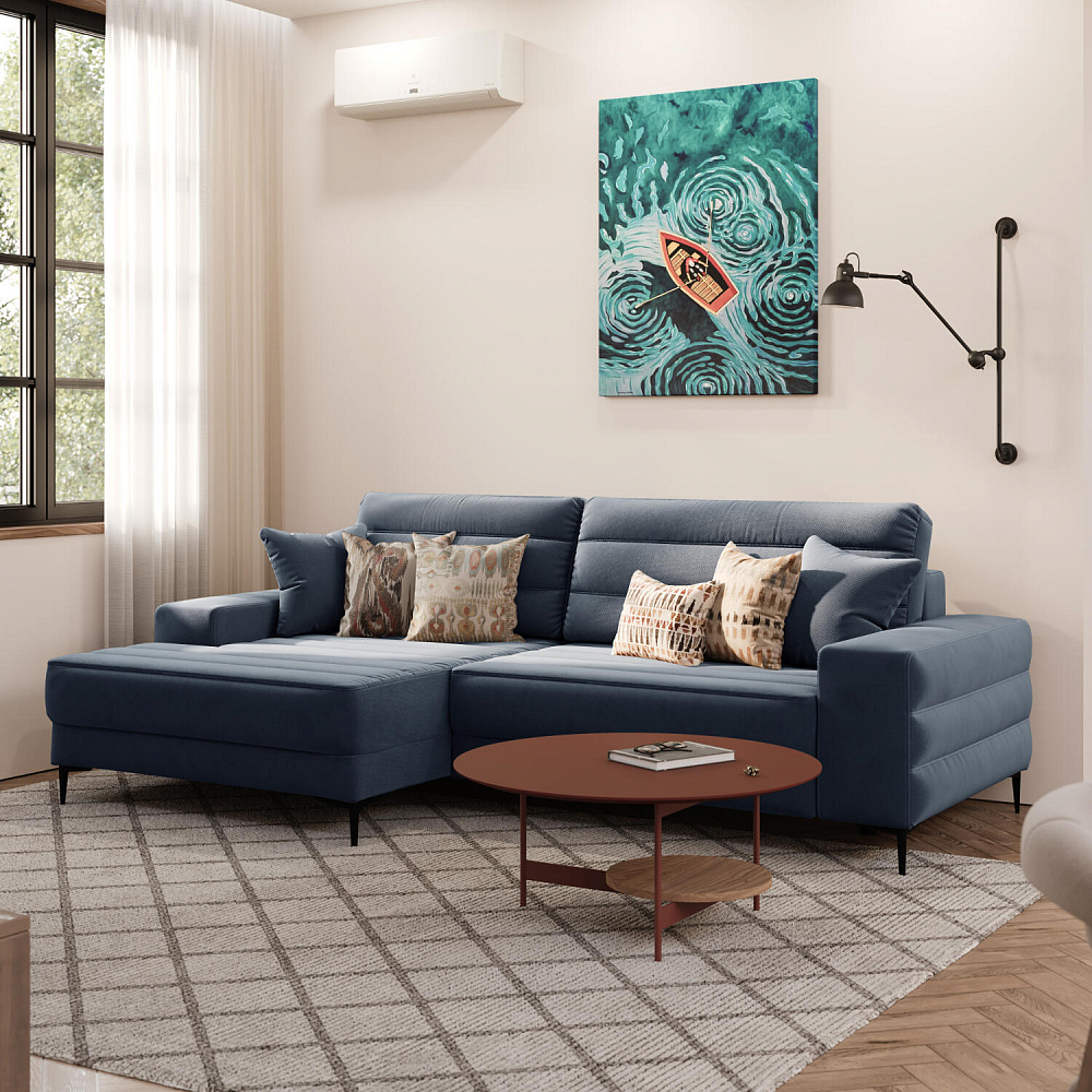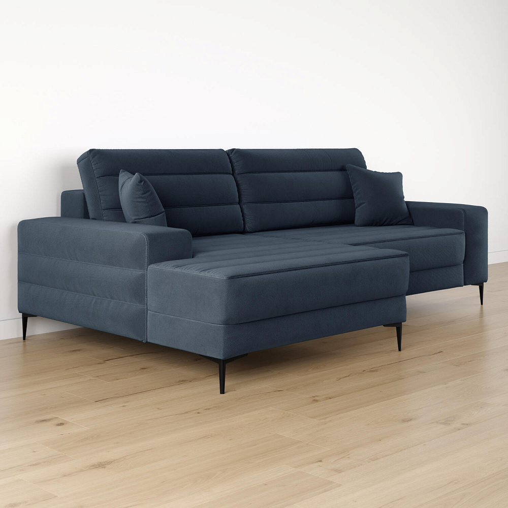 Угловой диван «Лиам» — превосходное сочетание стиля, функциональности и эргономики. Прямоугольные формы, горизонтальная строчка на каждом элементе дивана и тонкие черные опоры подчеркивают элегантный дизайн модели. Простой в использовании механизм трансформации поможет быстро разложить диван и создать просторное спальное место. Также «Лиам» имеет вместительное место хранения под сиденьем для множества вещей.