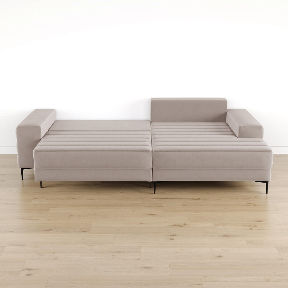 Угловой диван «Лиам» — превосходное сочетание стиля, функциональности и эргономики. Прямоугольные формы, горизонтальная строчка на каждом элементе дивана и тонкие черные опоры подчеркивают элегантный дизайн модели. Простой в использовании механизм трансформации поможет быстро разложить диван и создать просторное спальное место. Также «Лиам» имеет вместительное место хранения под сиденьем для множества вещей.