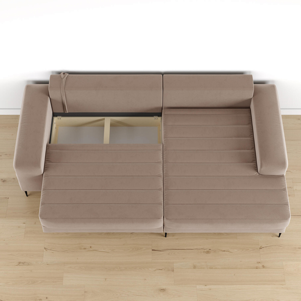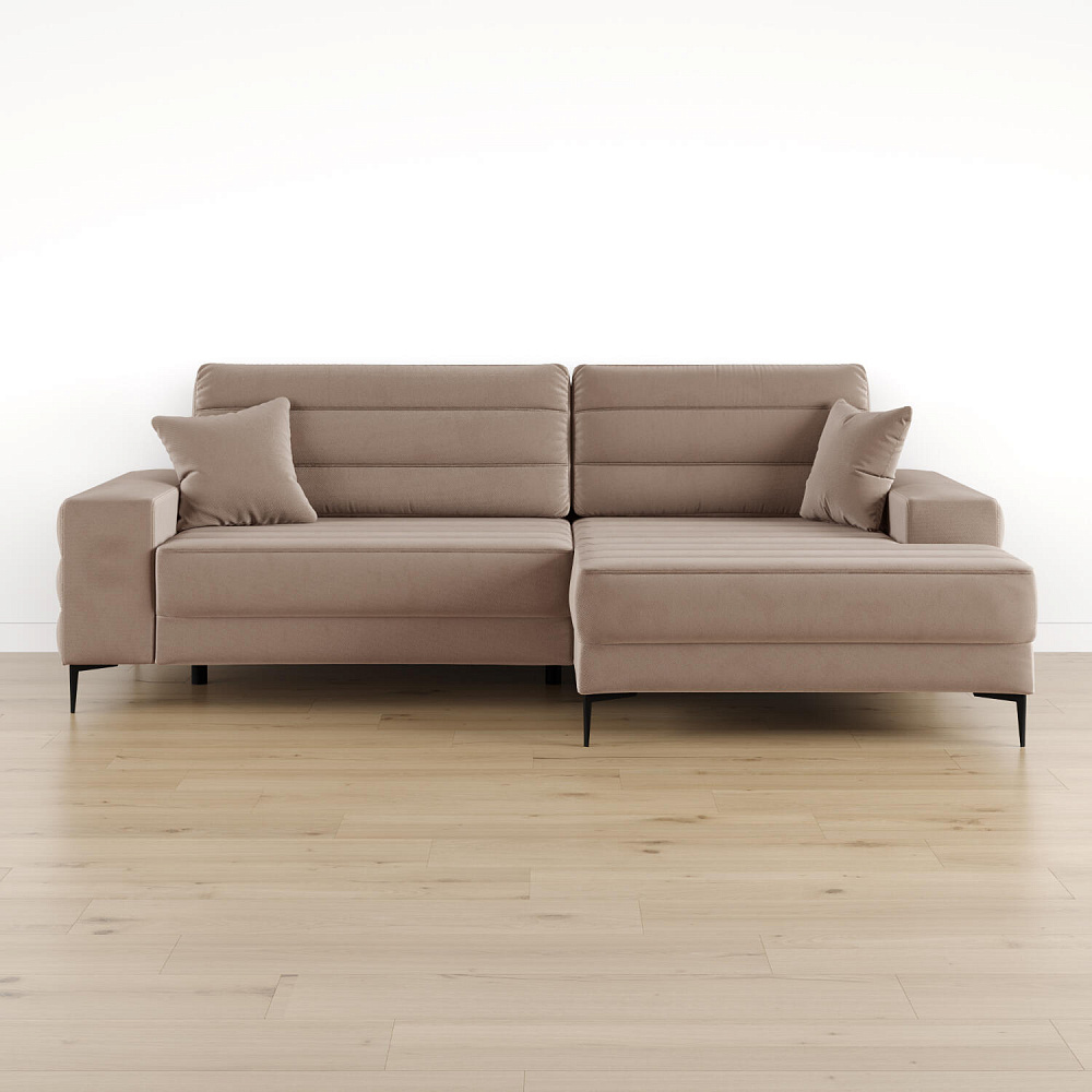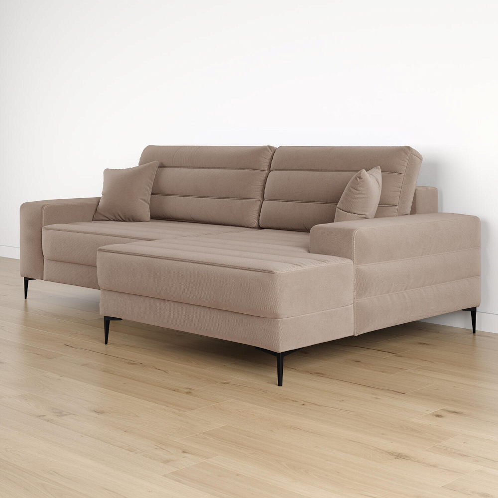 Угловой диван «Лиам» — превосходное сочетание стиля, функциональности и эргономики. Прямоугольные формы, горизонтальная строчка на каждом элементе дивана и тонкие черные опоры подчеркивают элегантный дизайн модели. Простой в использовании механизм трансформации поможет быстро разложить диван и создать просторное спальное место. Также «Лиам» имеет вместительное место хранения под сиденьем для множества вещей.