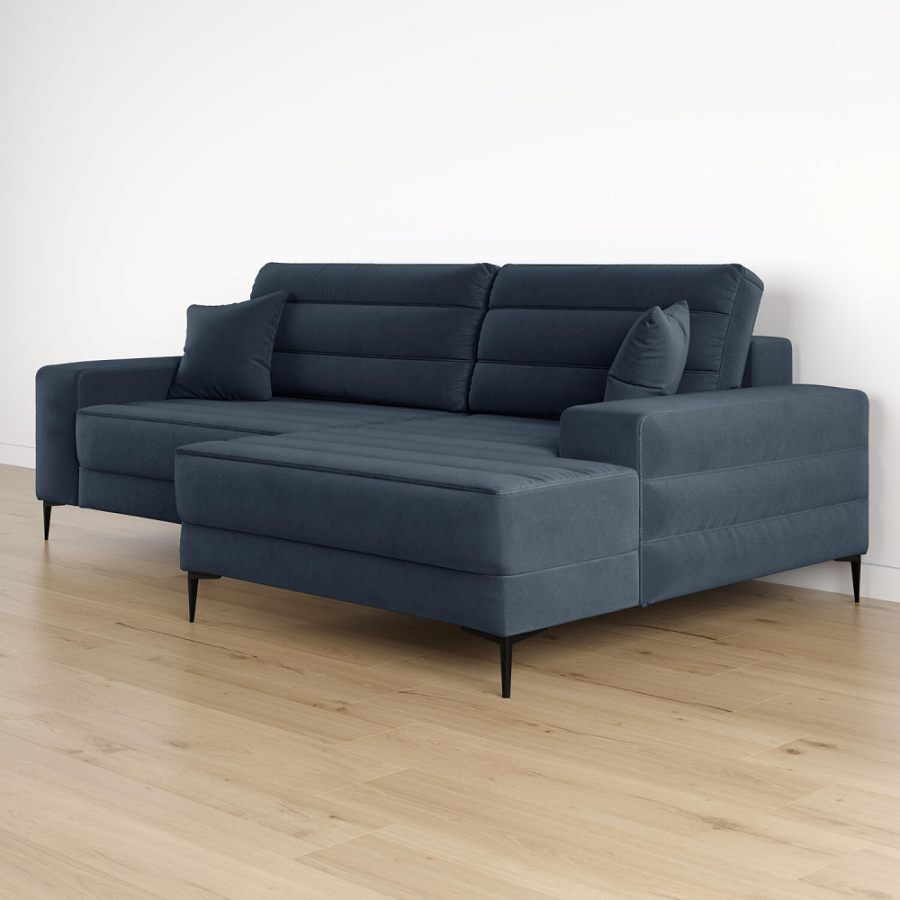 Угловой диван «Лиам» — превосходное сочетание стиля, функциональности и эргономики. Прямоугольные формы, горизонтальная строчка на каждом элементе дивана и тонкие черные опоры подчеркивают элегантный дизайн модели. Простой в использовании механизм трансформации поможет быстро разложить диван и создать просторное спальное место. Также «Лиам» имеет вместительное место хранения под сиденьем для множества вещей.