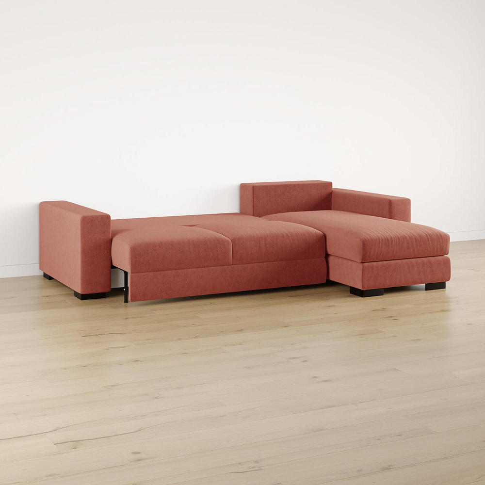 Размер спального места — 164 х 255 см. Диван легко трансформируется в двуспальную кровать, на которой смогут расположиться и с комфортом выспаться два человека.
