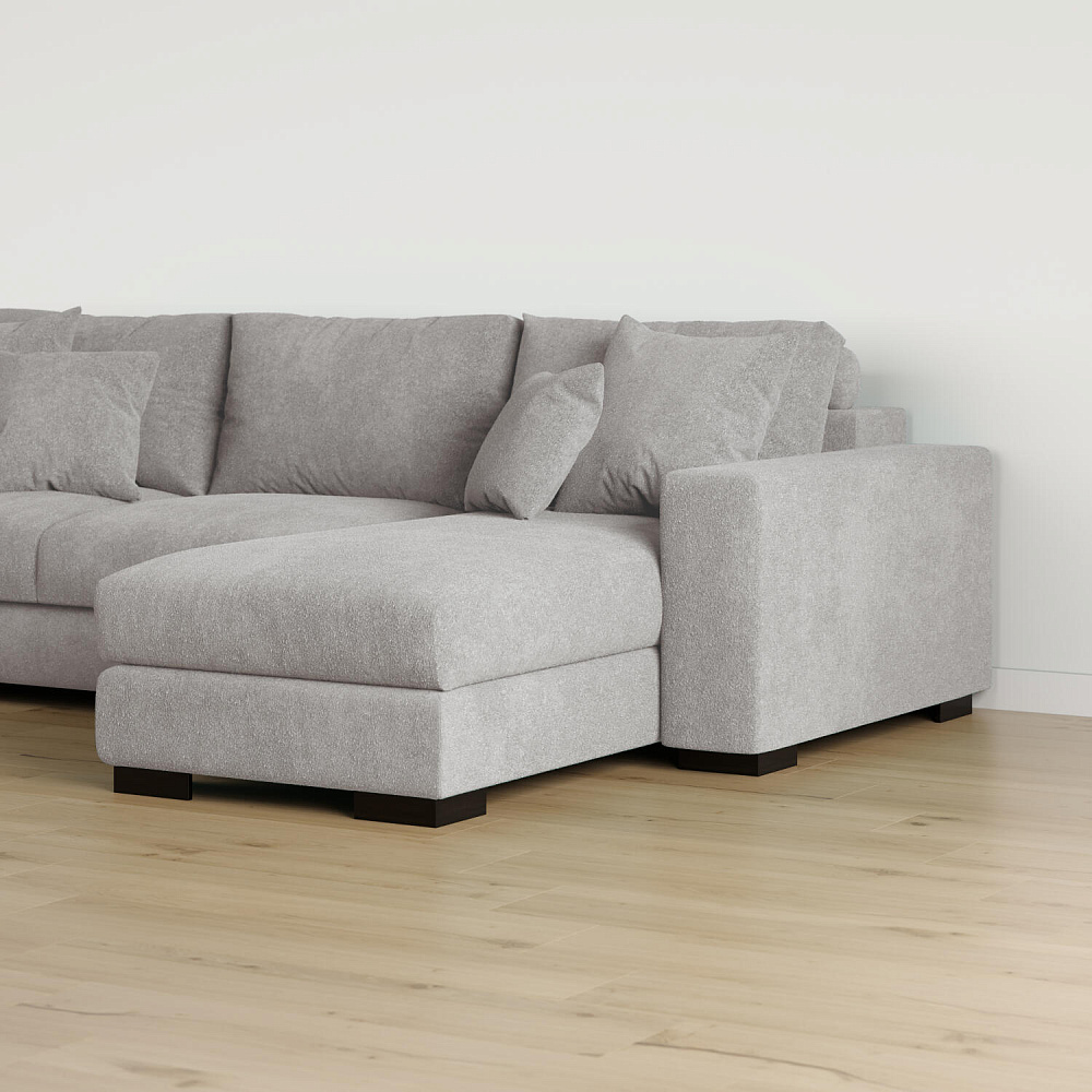 Обивка из букле. Зернистая неоднородная фактура букле создает многослойный визуальный эффект. Ткань плавно повторяет мебельные формы и подчеркивает стильный дизайн модели.