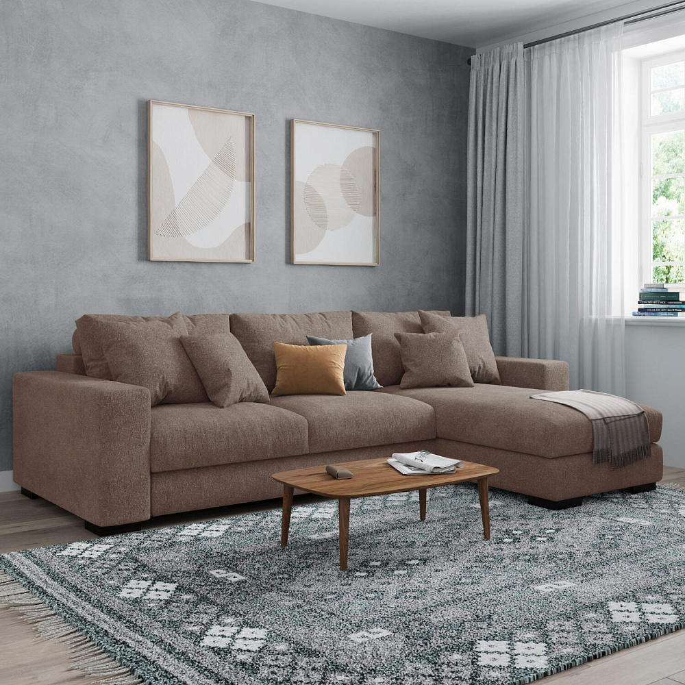 Угловой диван «Юта» — превосходное сочетание комфорта и стильного дизайна. Диван обладает глубокой посадкой, а приспинные и декоративные подушки сделают отдых комфортнее. Благодаря механизму трансформации «Тик-так» диван легко раскладывается в полноценную кровать с широким спальным местом. Под сиденьем расположен бельевой короб для постельных принадлежностей. Пропорциональные формы без лишнего декора, обивка из букле подчеркивают минималистичный дизайн модели, который подойдет для любого современного интерьера.