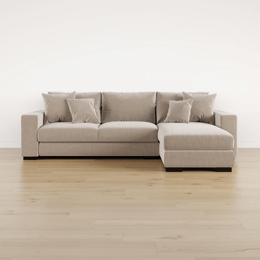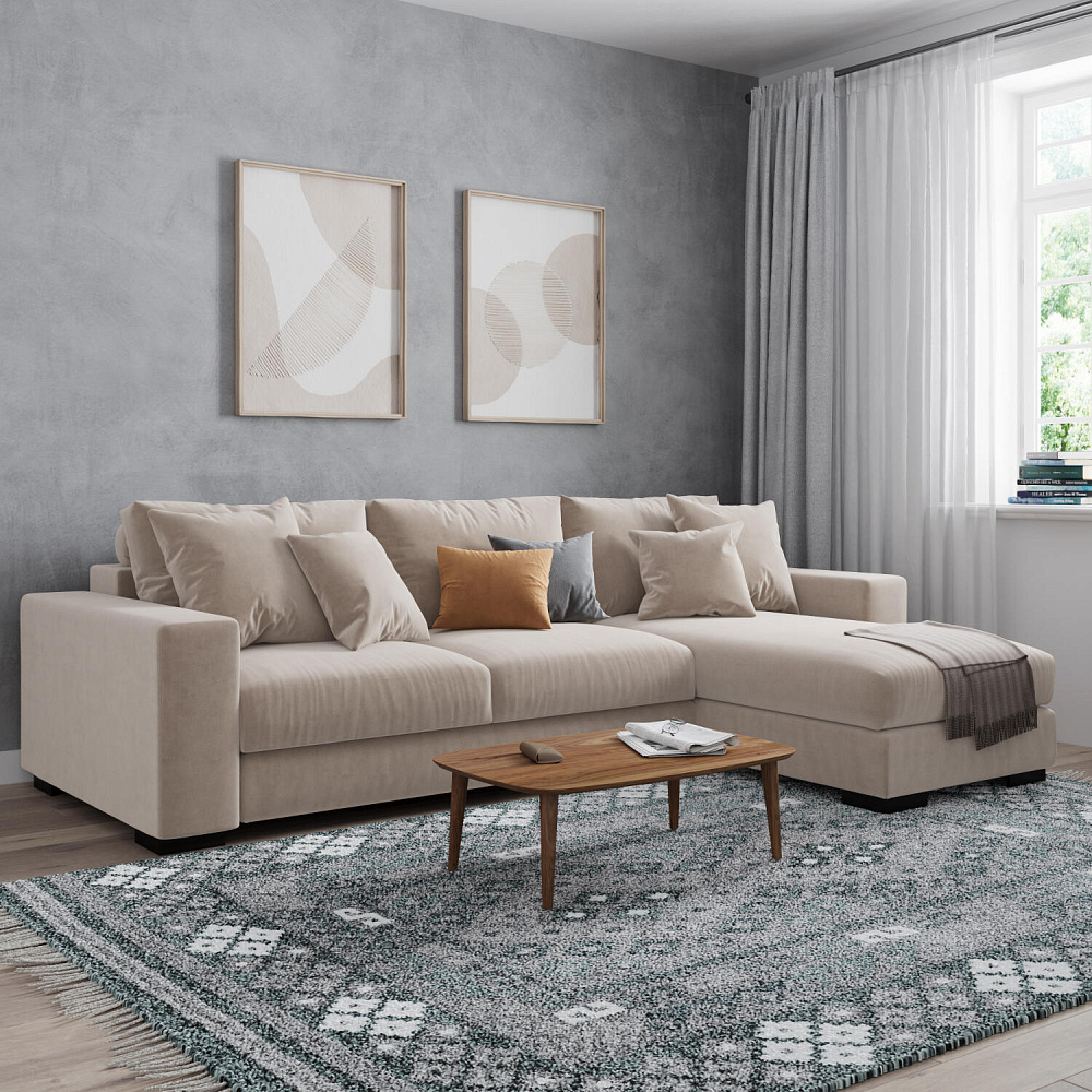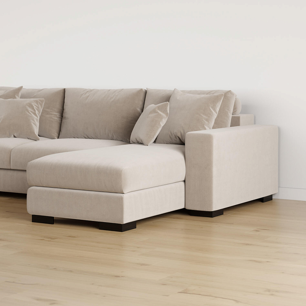 Угловой диван «Юта» — превосходное сочетание комфорта и стильного дизайна. Диван обладает глубокой посадкой, а приспинные и декоративные подушки сделают отдых комфортнее. Благодаря механизму трансформации «Тик-так» диван легко раскладывается в полноценную кровать с широким спальным местом. Под сиденьем расположен бельевой короб для постельных принадлежностей. Пропорциональные формы без лишнего декора, бархатная велюровая обивка подчеркивают минималистичный дизайн модели, который подойдет для любого современного интерьера.