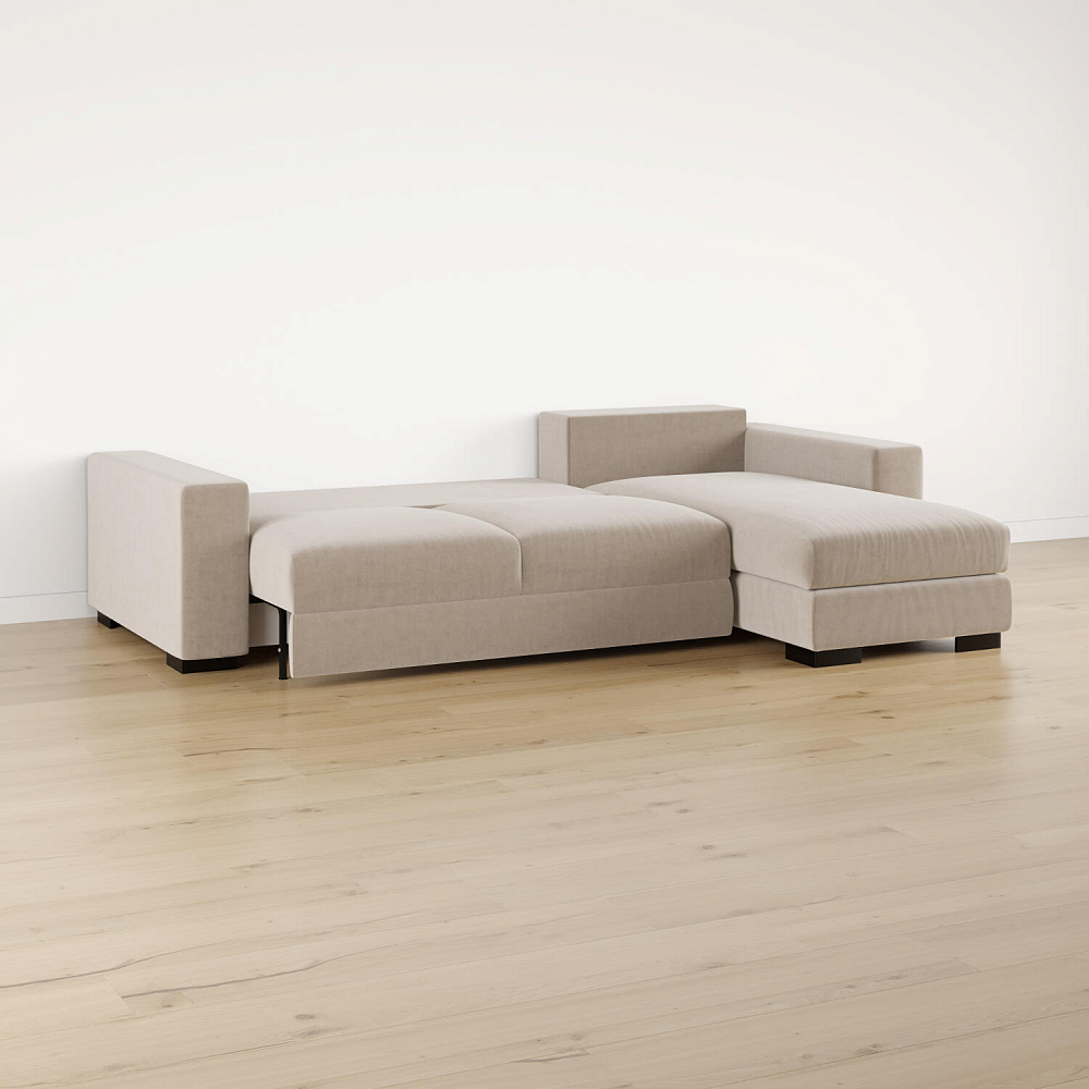 Размер спального места — 164 х 255 см. Диван легко трансформируется в двуспальную кровать, на которой смогут расположиться и с комфортом выспаться два человека.