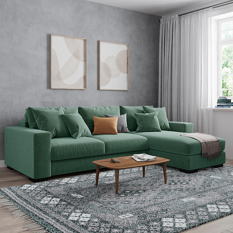 Угловой диван «Юта» — превосходное сочетание комфорта и стильного дизайна. Диван обладает глубокой посадкой, а приспинные и декоративные подушки сделают отдых комфортнее. Благодаря механизму трансформации «Тик-так» диван легко раскладывается в полноценную кровать с широким спальным местом. Под сиденьем расположен бельевой короб для постельных принадлежностей. Пропорциональные формы без лишнего декора, бархатная велюровая обивка подчеркивают минималистичный дизайн модели, который подойдет для любого современного интерьера.