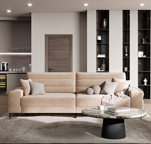 - Малая спинка и дизайн на 360 градусов. Благодаря малой спинке диван можно устанавливать вплотную к стене. В то же время диван прекрасно подойдёт для зонирования помещений, так как задняя спинка выполнена в обивочной ткани.