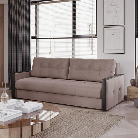 Диван «Винг» объединяет строгие геометрические формы и мягкую воздушность. Механизм трансформации «Еврокнижка» в сложенном виде позволяет сэкономить пространство в комнате, в разложенном - обеспечивает комфортное и ровное спальное место. Спинка дивана выполнена в той же обивке, что и основная часть, что даёт возможность использовать диван для зонирования комнаты. Горизонтальную поверхность на подлокотниках можно использовать в качестве мини-столешницы для небольших предметов.