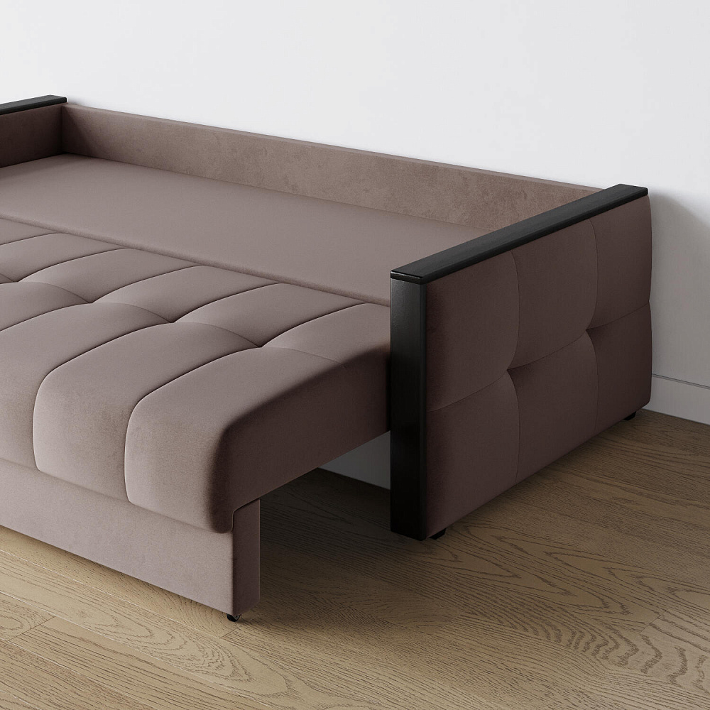 - Размер спального места — 198 х 142 см. Диван легко трансформируется в полноценное двуспальное место.
