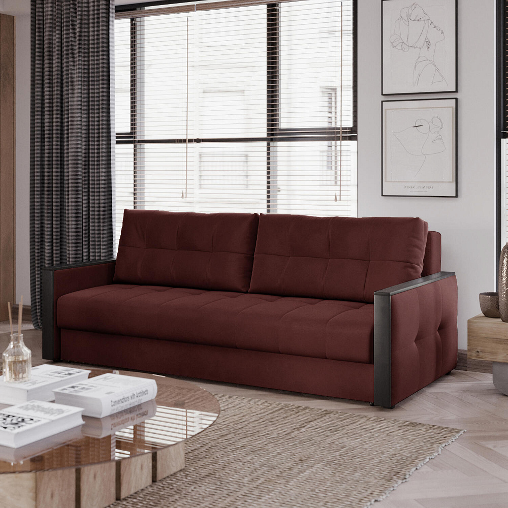 Диван «Винг» объединяет строгие геометрические формы и мягкую воздушность. Механизм трансформации «Еврокнижка» в сложенном виде позволяет сэкономить пространство в комнате, в разложенном - обеспечивает комфортное и ровное спальное место. Спинка дивана выполнена в той же обивке, что и основная часть, что даёт возможность использовать диван для зонирования комнаты. Горизонтальную поверхность на подлокотниках можно использовать в качестве мини-столешницы для небольших предметов.