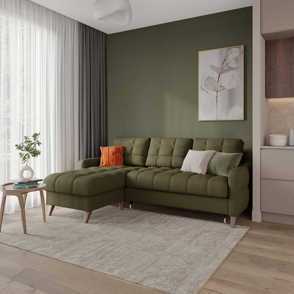 Универсальный угол. Диван подстроится под условия помещения - оттоманка устанавливается как слева, так и справа.