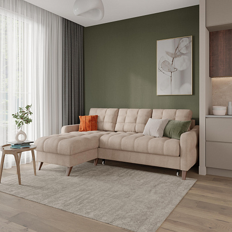 Универсальный угол. Диван подстроится под условия помещения - оттоманка устанавливается как слева, так и справа.