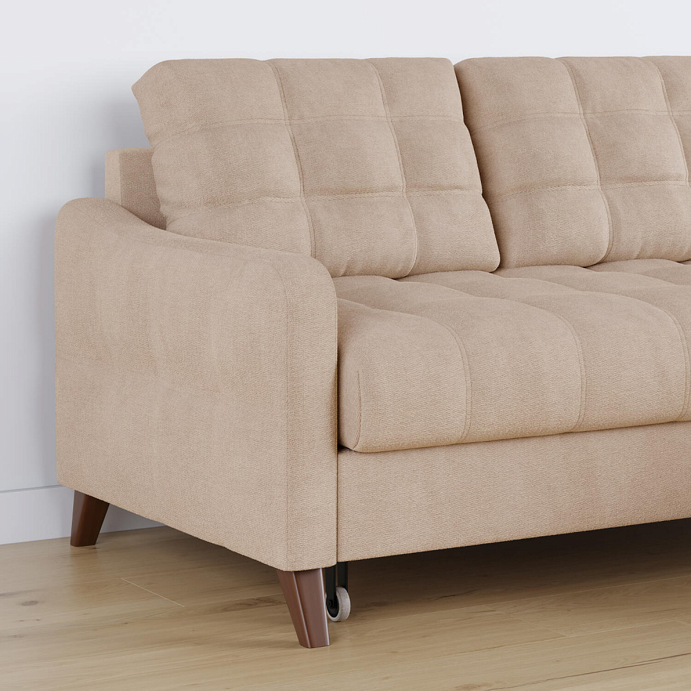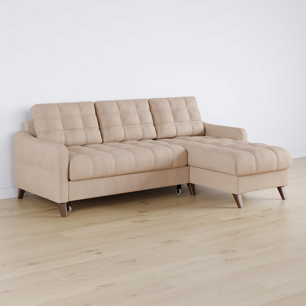 Угловой диван «Бремен» в популярном скандинавском стиле станет функциональным и стильным местом отдыха в доме. Диван с глубокой посадкой оснащён механизмом трансформации и большим бельевым коробом. Высокие опоры и однотонная обивка натурального оттенка добавят в комнату воздуха и лёгкости.