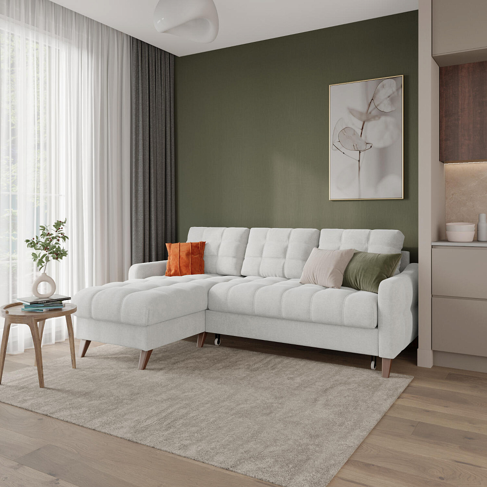 Универсальный угол. Диван подстроится под условия помещения - оттоманка устанавливается как слева, так и справа.