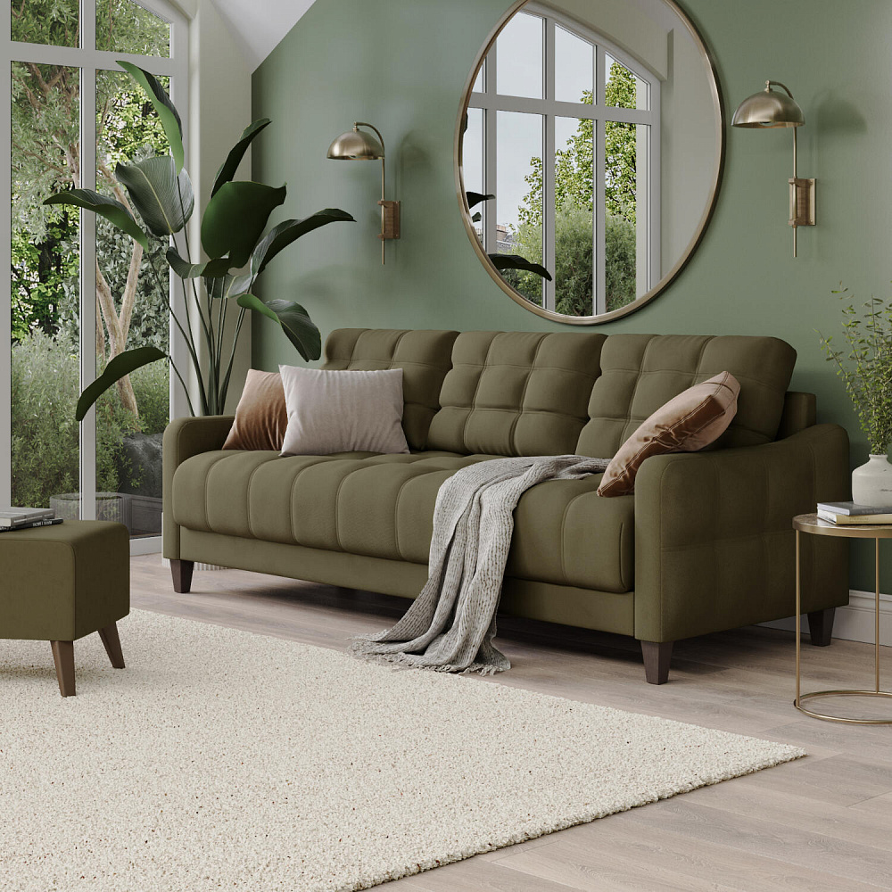 Диван «Бремен» в популярном скандинавском стиле станет функциональным и стильным местом отдыха в доме. Диван с глубокой посадкой оснащён механизмом трансформации и большим бельевым коробом. Высокие опоры и однотонная обивка натурального оттенка добавят в комнату воздуха и лёгкости.