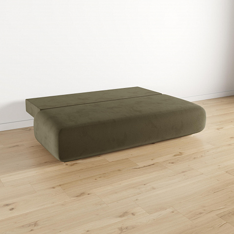 Механизм трансформации «Еврокнижка». Диван легко раскладывается - нужно выкатить вперёд сиденье и опустить спинку. Отодвигать диван от стены не требуется, потому что двигается только передняя часть.