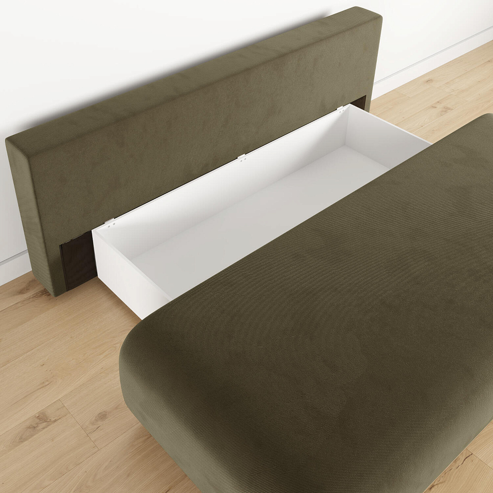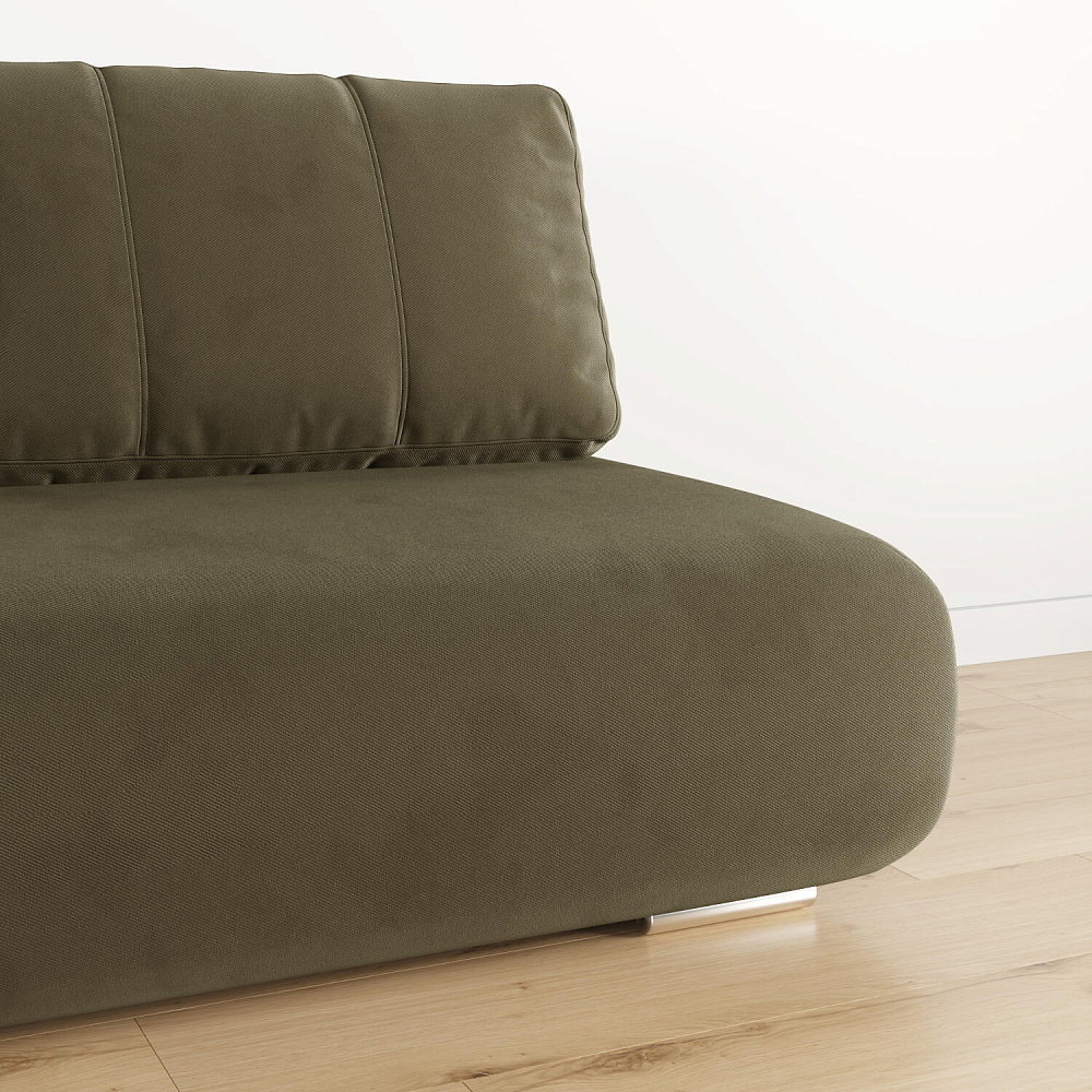 Диван «Лори» — стильное решение для небольшой студии, гостиной или кухни. Диван с компактными габаритами не загромоздит пространство комнаты благодаря отсутствию подлокотников. Обивка из мягкого велюра и контрастный кант подчёркивают плавные формы модели и придают дивану запоминающийся футуристичный вид.