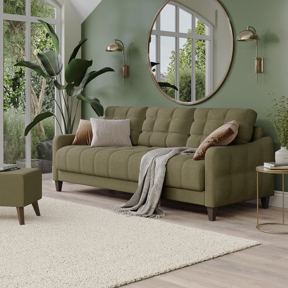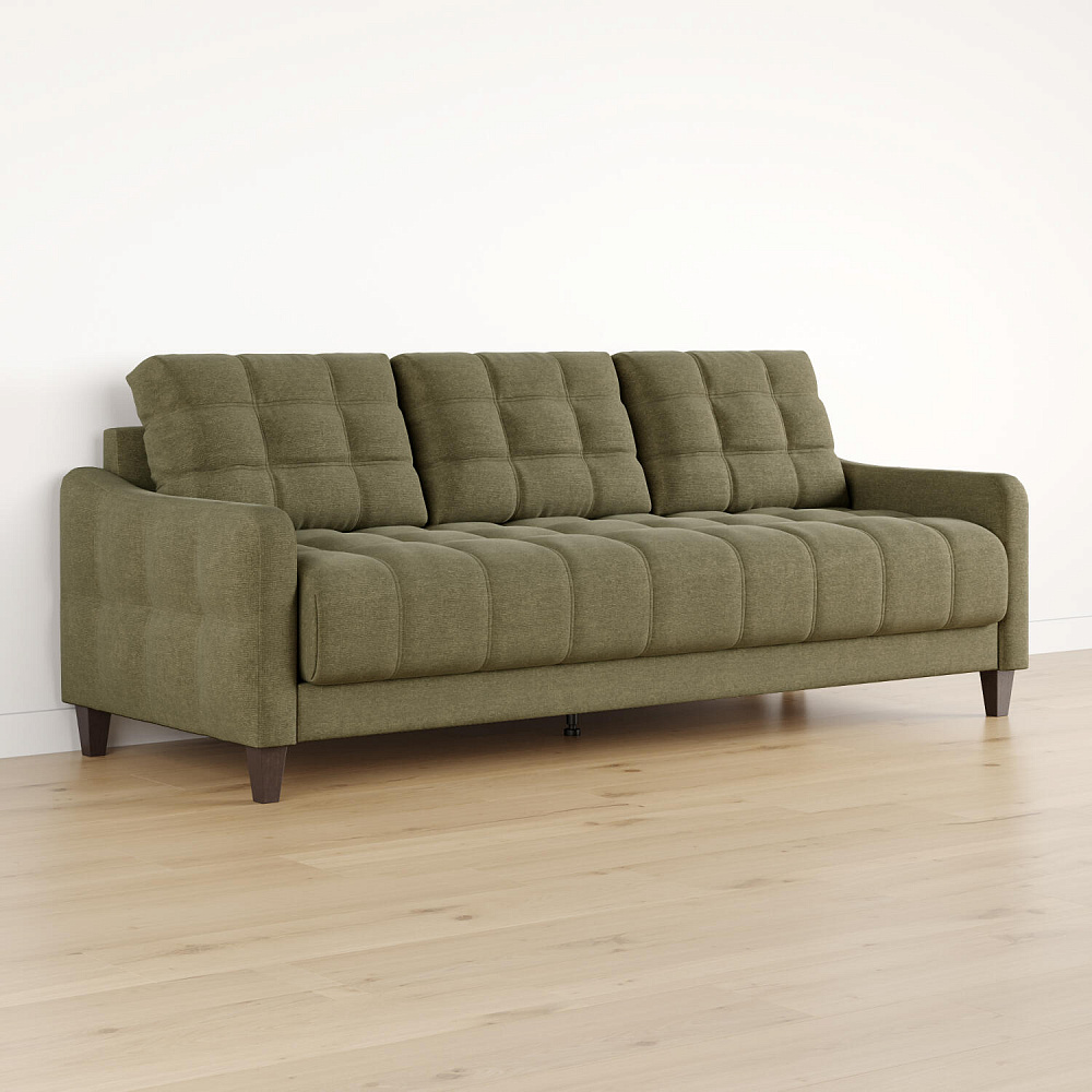 Диван «Бремен» в популярном скандинавском стиле станет функциональным и стильным местом отдыха в доме. Диван с глубокой посадкой оснащён механизмом трансформации и большим бельевым коробом. Высокие опоры и однотонная обивка натурального оттенка добавят в комнату воздуха и лёгкости.