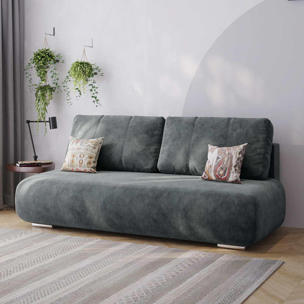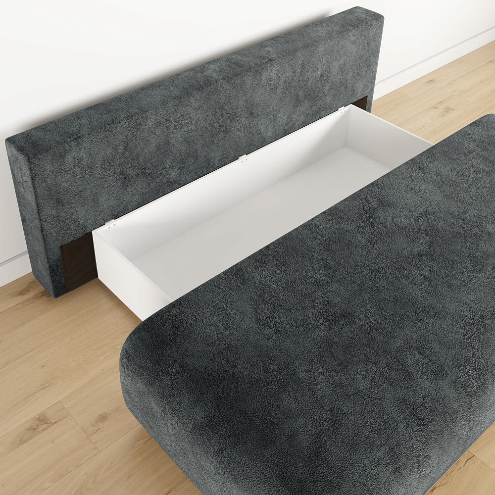 Диван «Лори» — стильное решение для небольшой студии, гостиной или кухни. Диван с компактными габаритами не загромоздит пространство комнаты благодаря отсутствию подлокотников. Обивка из мягкого велюра и контрастный кант подчёркивают плавные формы модели и придают дивану запоминающийся футуристичный вид.