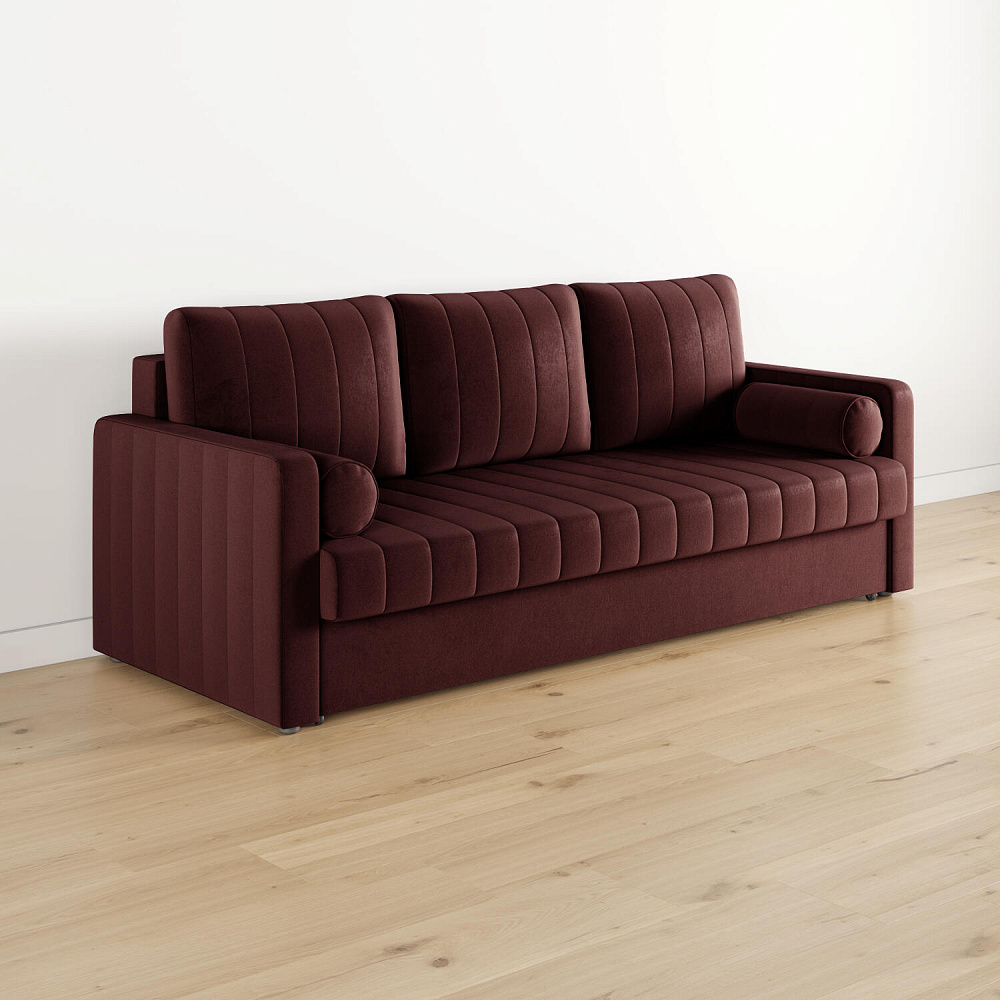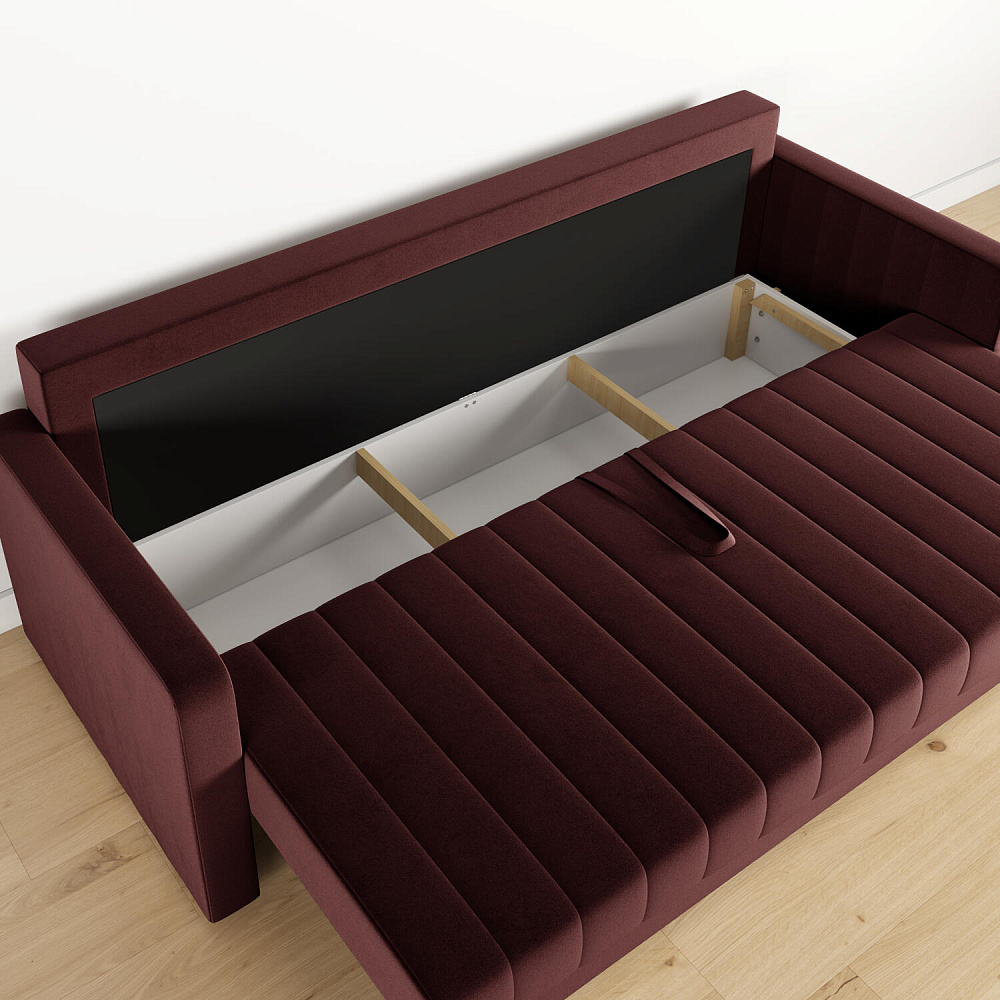 Механизм трансформации «Еврокнижка». Диван легко раскладывается — достаточно выкатить вперёд сиденье и опустить спинку. Отодвигать диван от стены не требуется.