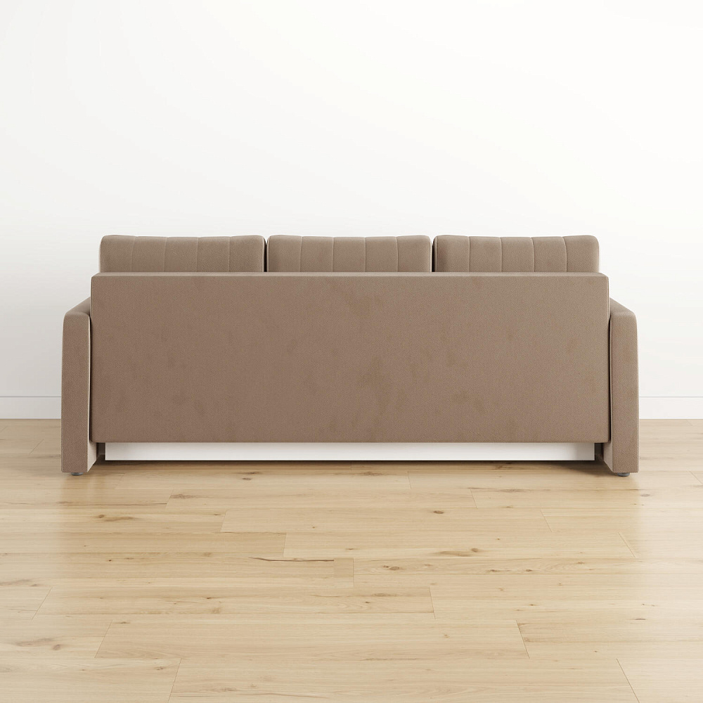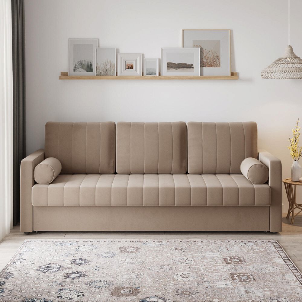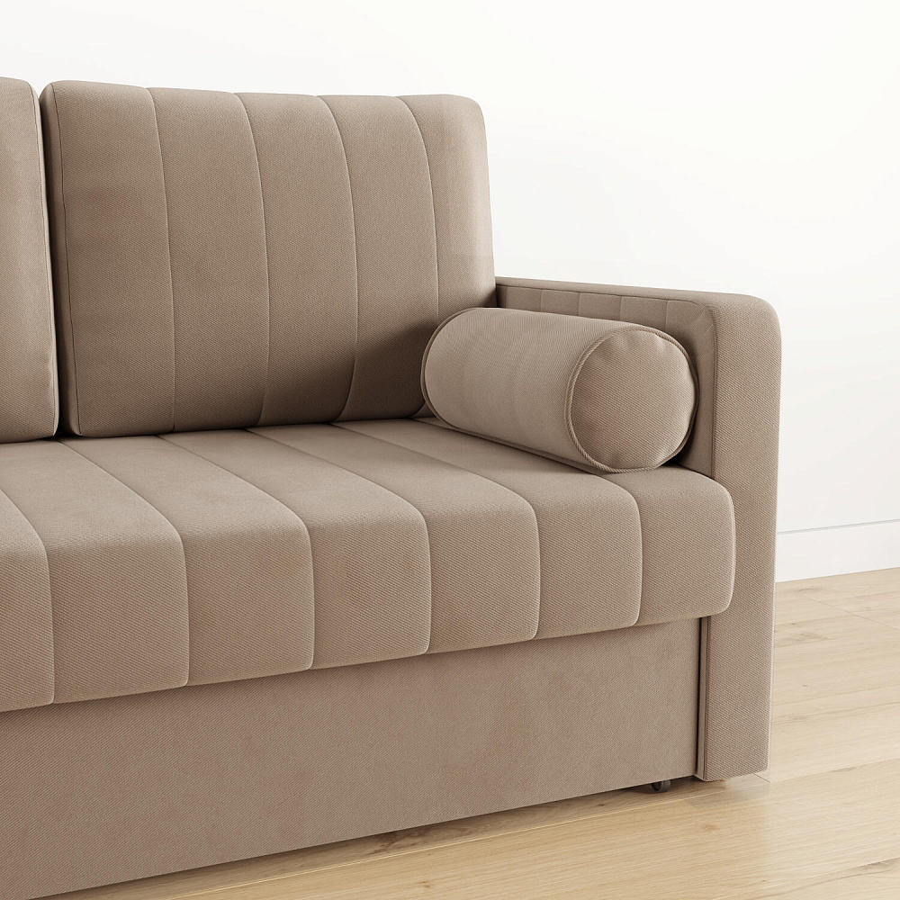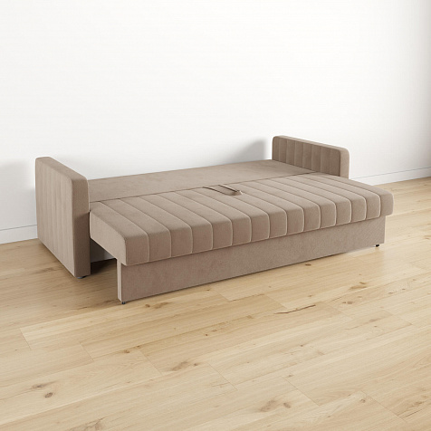 Механизм трансформации «Еврокнижка». Диван легко раскладывается — достаточно выкатить вперёд сиденье и опустить спинку. Отодвигать диван от стены не требуется.