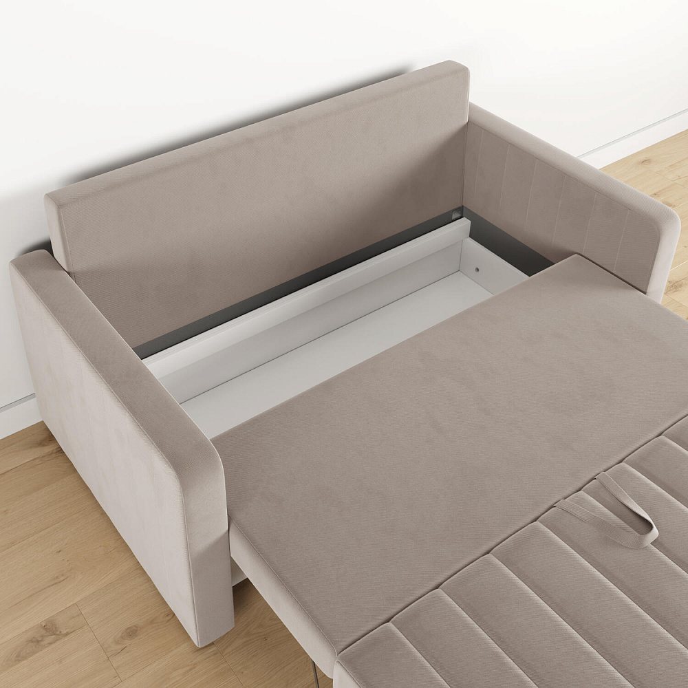 Размер спального места — 140 х 198 см. Полноценная кровать с ровным спальным местом прекрасно подойдёт в качестве гостевого варианта или для ежедневного сна одного человека.