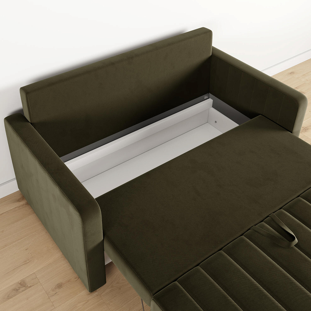 Диван «Портер» идеально подойдет для обустройства квартир-студий, гостевых и детских комнат. Модель предлагает уютный дизайн с прямыми формами, спальное место и ящик для хранения. Задняя часть спинки выполнена в основной обивочной ткани, что дает возможность свободно размещать диван и зонировать пространство комнаты.