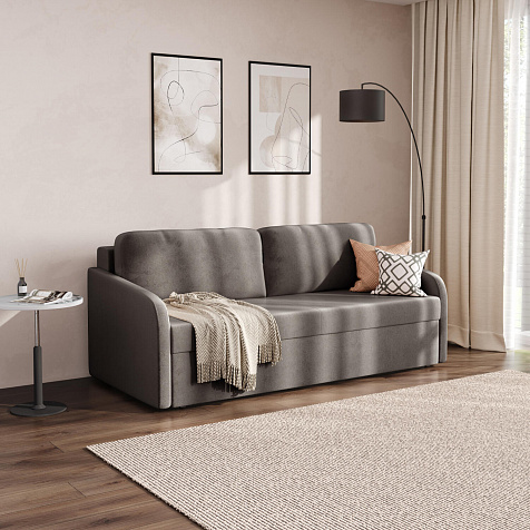 Узкие подлокотники занимают минимум полезного пространства, благодаря чему достигается оптимальный размер спального места при небольших габаритах дивана.