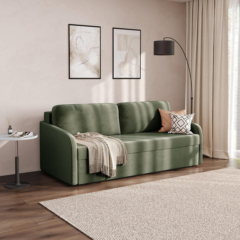 Диван «Эрвин» — минималистичная компактная модель подойдет для студии, столовой или детской. Благодаря небольшим габаритам диван можно с легкостью использовать в открытых планировках, разделяя помещения на различные зоны. Механизм трансформации обеспечивает комфортное и ровное спальное место. Вместительный бельевой короб поможет сэкономить место в шкафу и станет удобным местом для хранения постельного белья. Узкие подлокотники придают изделию законченный облик и при этом не занимают пространство комнаты.