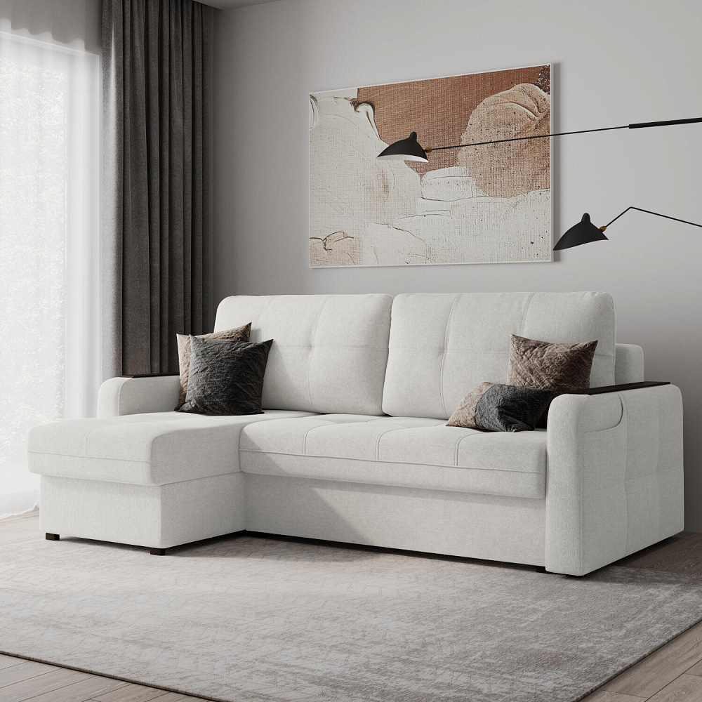 Универсальный угол. Диван подстроится под условия помещения — оттоманка крепится как слева, так и справа.