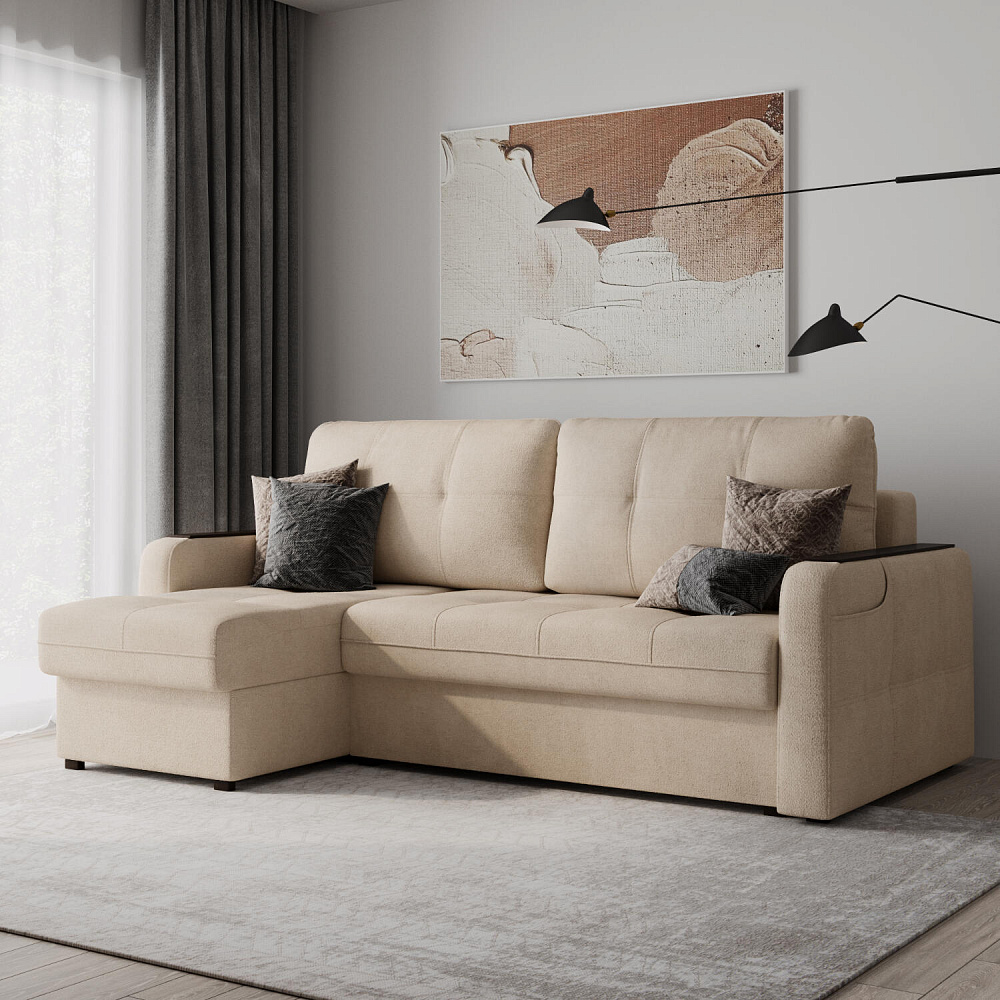 Угловой диван-кровать «Киль-3» — это удобная и функциональная мягкая мебель. Благодаря своему лаконичному дизайну модель может стать центральным элементом интерьера комнаты. Комфортабельное спальное место подходит для ежедневного сна. Дополнительный комфорт обеспечивают накладки на подлокотниках. Приспинные подушки позволяют удобно разместиться на диване, накладку на подлокотнике можно использовать как подставку для чашечки с любимым напитком.