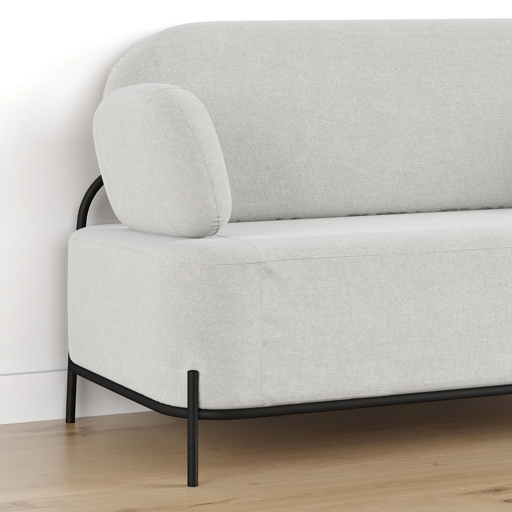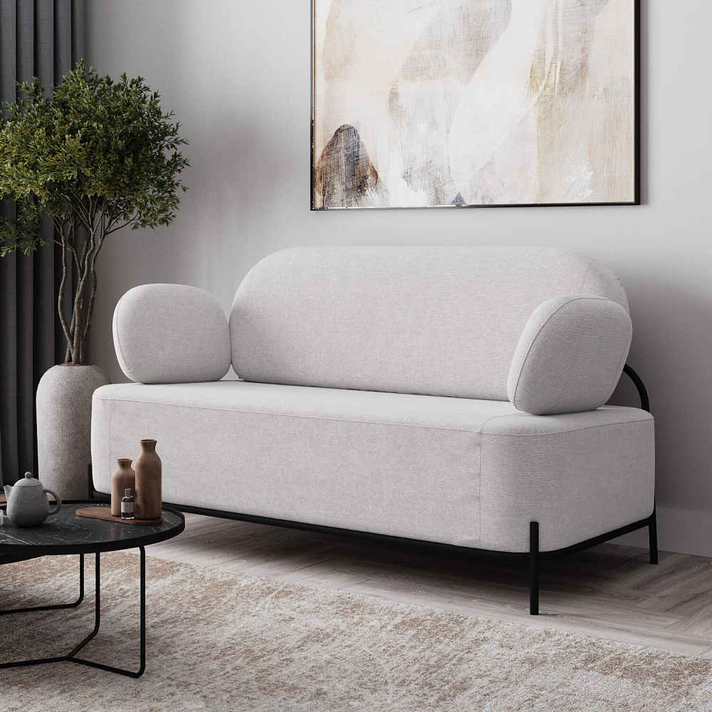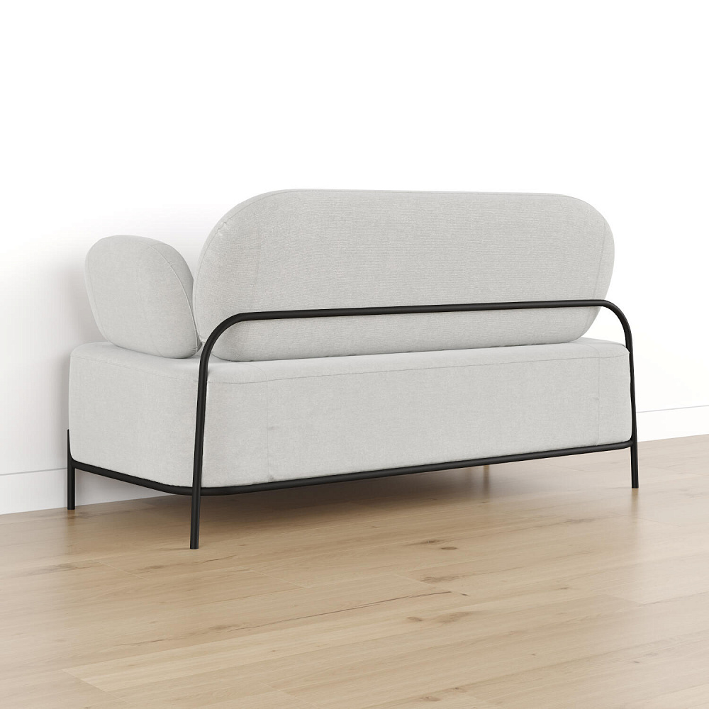 Двухместный диван «Луффи» с подлокотниками — это находка для ценителей оригинальных решений в интерьере. Контрастное сочетание мягких форм и тонких металлических опор поможет создать уютную и легкую зону отдыха. Задняя часть спинки выполнена в обивочной ткани, что позволяет разместить диван в центре комнаты для зонирования пространства.