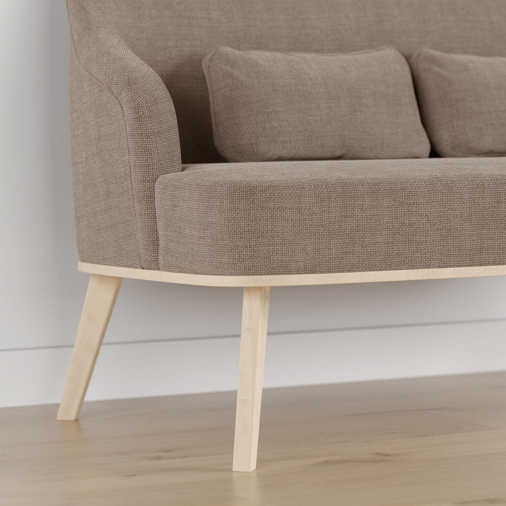 Двухместный диван «Ноа» — минималистичная модель идеально подойдет для создания уютной зоны отдыха. Диван в скандинавском стиле выделяется низкой спинкой, плавно перетекающей в подлокотники. Лаконичный образ завершает деревянное основание с тонкими опорами. Небольшие приспинные подушки помогут скорректировать глубину посадки для более комфортного отдыха.
