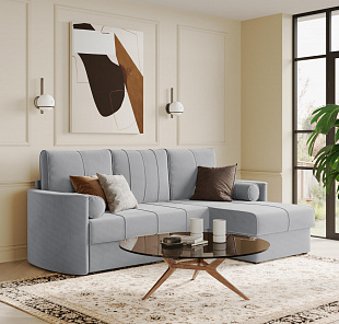Высокие опоры подчеркивают утонченный дизайн модели и облегчают уборку под диваном.
