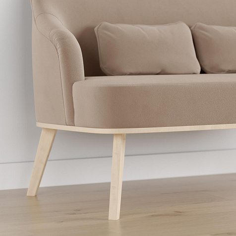 Двухместный диван «Ноа» — минималистичная модель идеально подойдет для создания уютной зоны отдыха. Диван в скандинавском стиле выделяется низкой спинкой, плавно перетекающей в подлокотники. Лаконичный образ завершает деревянное основание с тонкими опорами. Небольшие приспинные подушки помогут скорректировать глубину посадки для более комфортного отдыха.