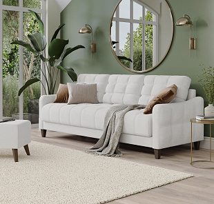 Высокие опоры подчеркивают утонченный дизайн модели и облегчают уборку под диваном.