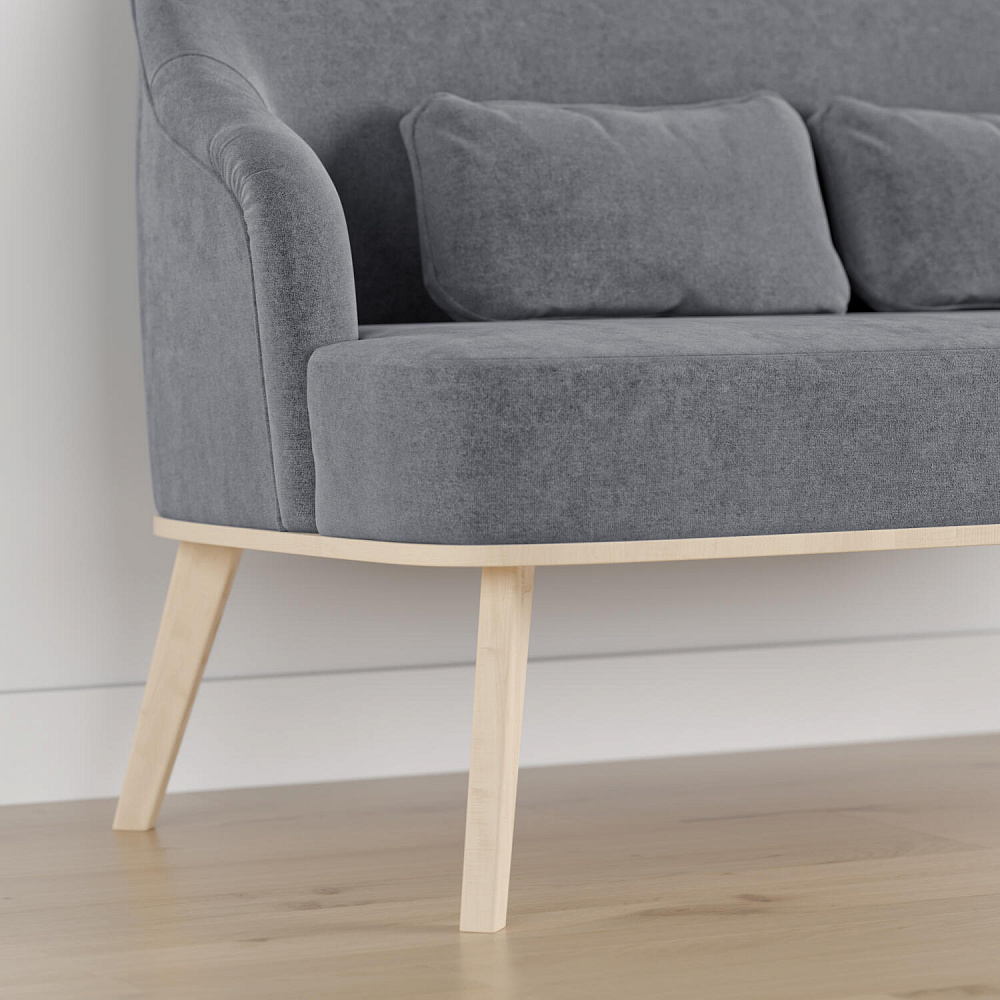 Высокие опоры подчеркивают утонченный дизайн модели и облегчают уборку под диваном.