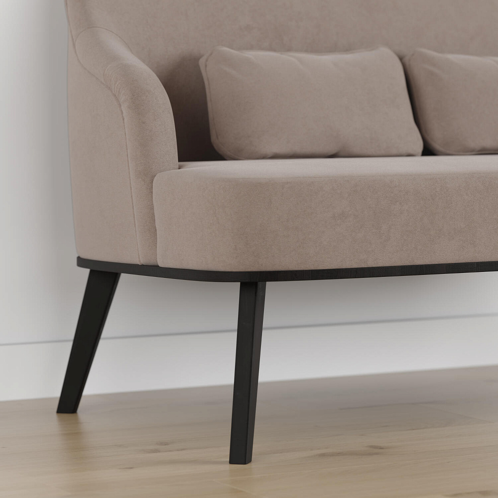 Высокие опоры подчеркивают утонченный дизайн модели и облегчают уборку под диваном.