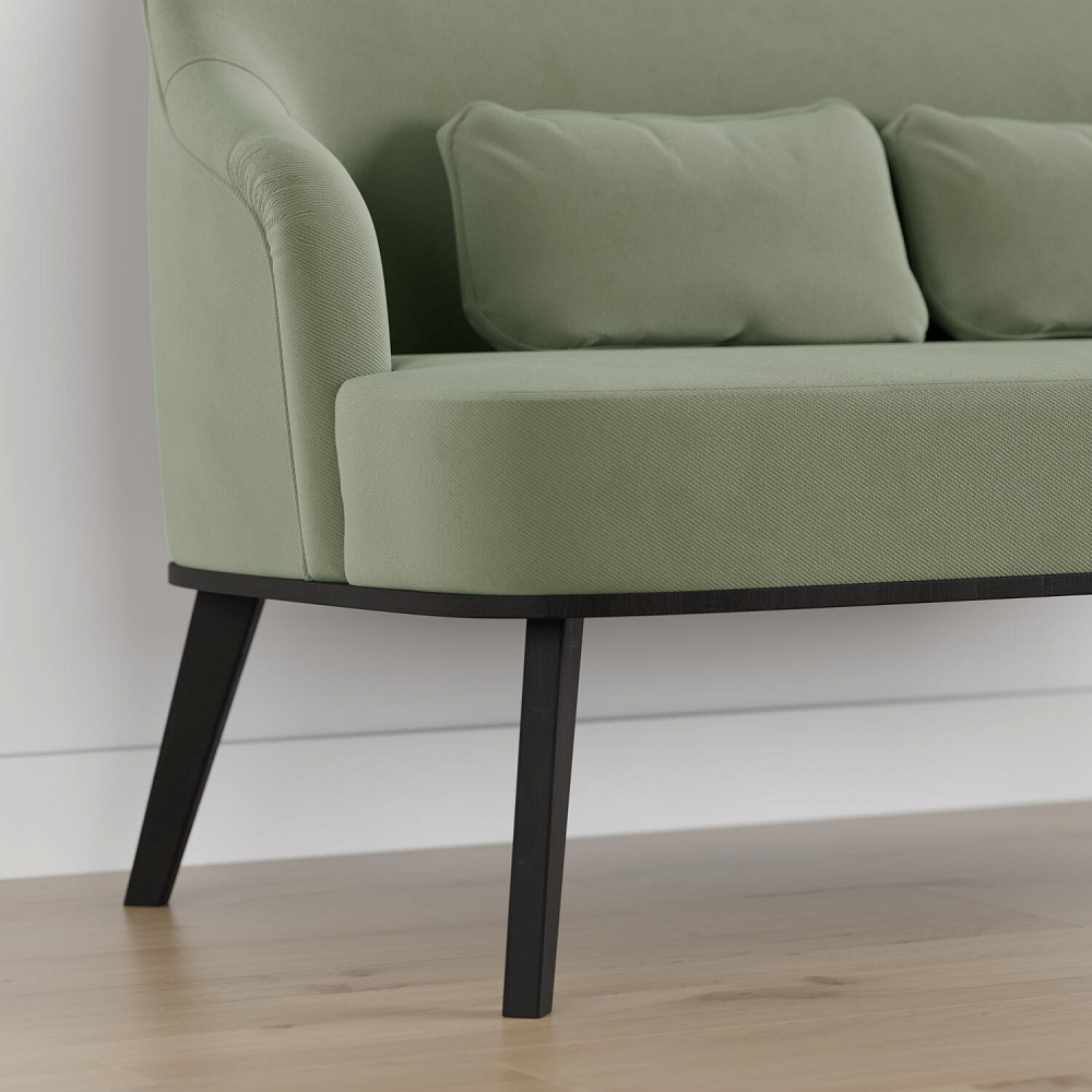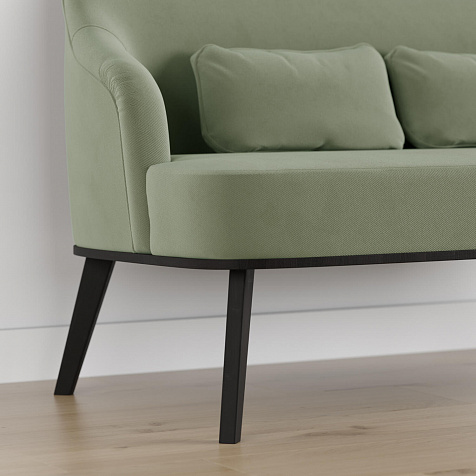Высокие опоры подчеркивают утонченный дизайн модели и облегчают уборку под диваном.