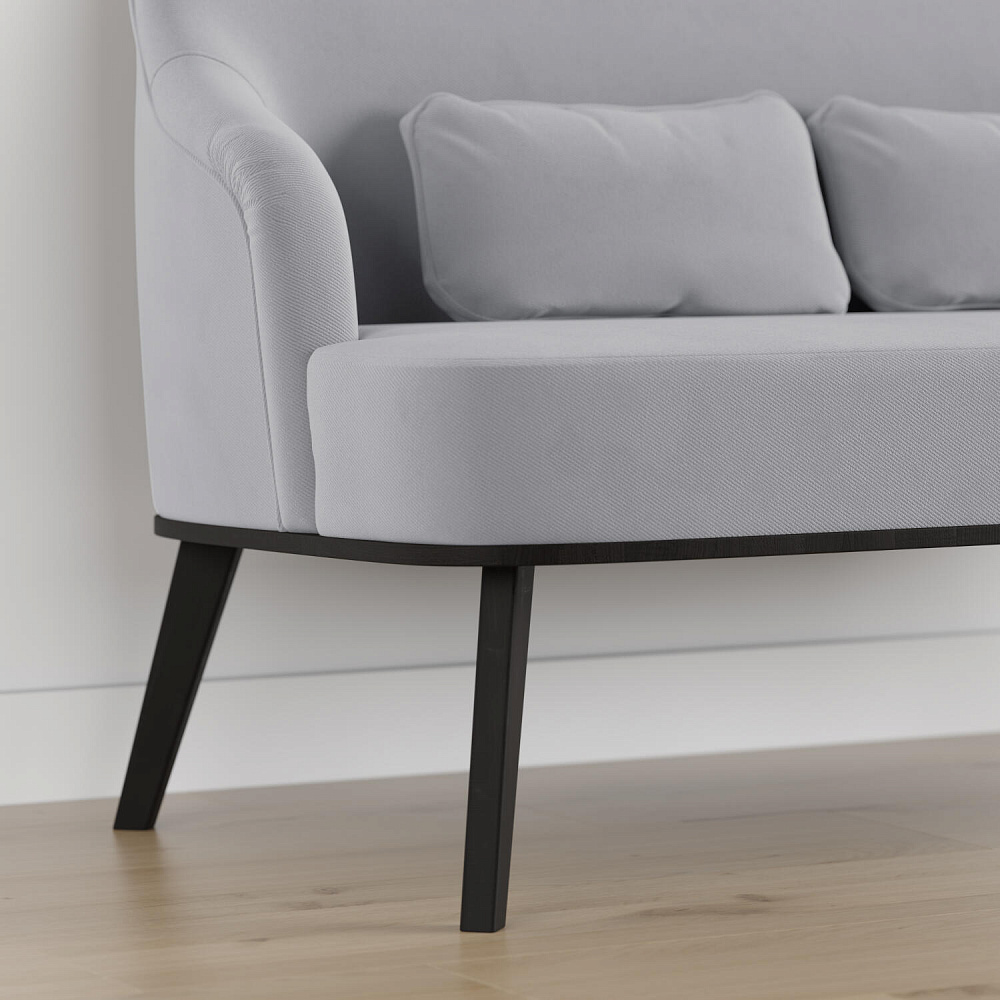 Высокие опоры подчеркивают утонченный дизайн модели и облегчают уборку под диваном.