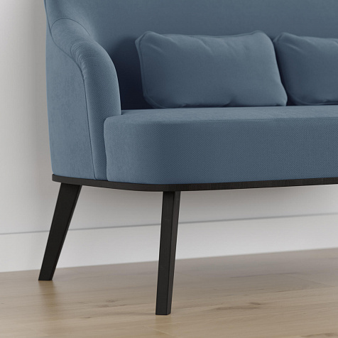 Высокие опоры подчеркивают утонченный дизайн модели и облегчают уборку под диваном.