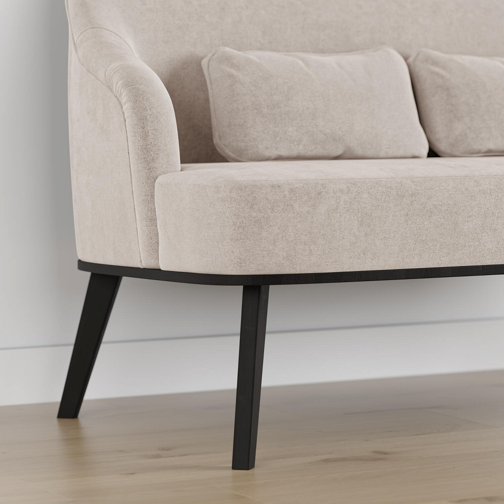 Высокие опоры подчеркивают утонченный дизайн модели и облегчают уборку под диваном.