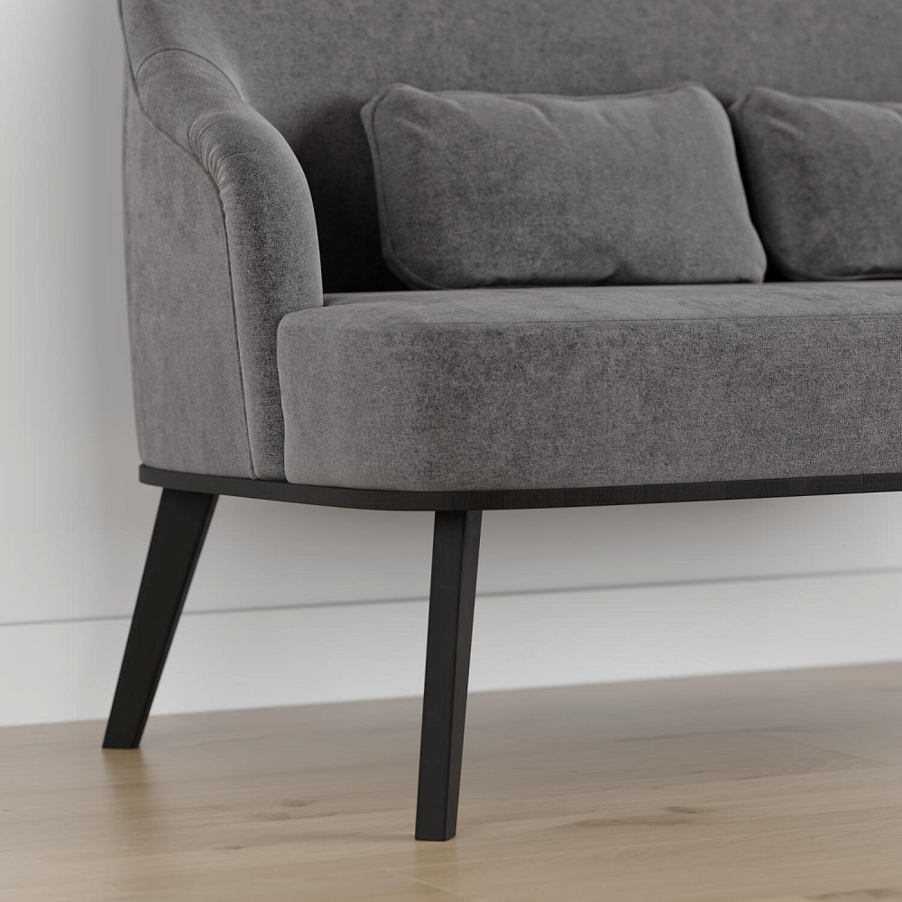 Высокие опоры подчеркивают утонченный дизайн модели и облегчают уборку под диваном.