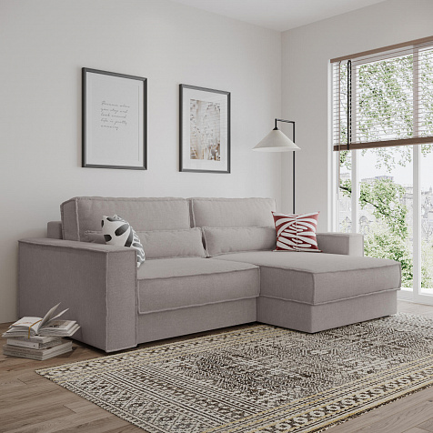 Диван угловой «Сеул» с глубокой посадкой оснащён механизмом трансформации и большим бельевым коробом. Спинка дивана выполнена в обивочной ткани, что даёт возможность использовать его для зонирования комнаты. Одной из отличительных особенностей модели является блок независимых пружин, которые обеспечивают оптимальную ортопедическую поддержку тела во время отдыха и сна. Поэтому диван в разложенном виде служит не только гостевым вариантом, а становится полноценным спальным местом для ежедневного сна.